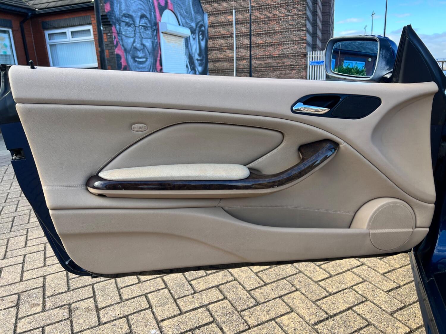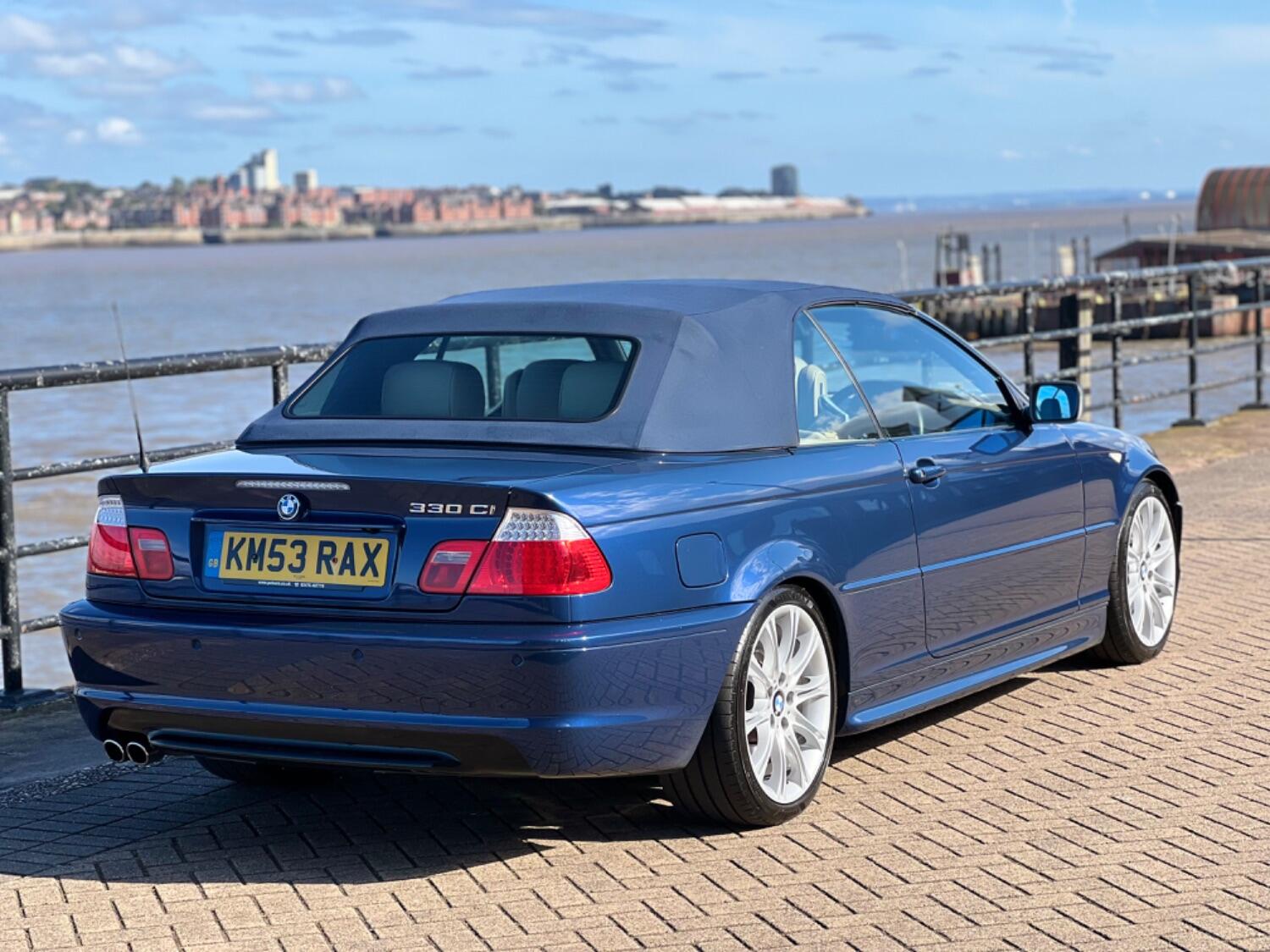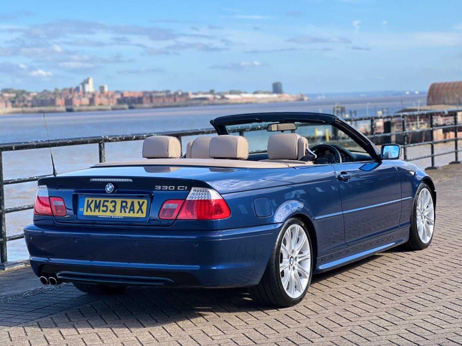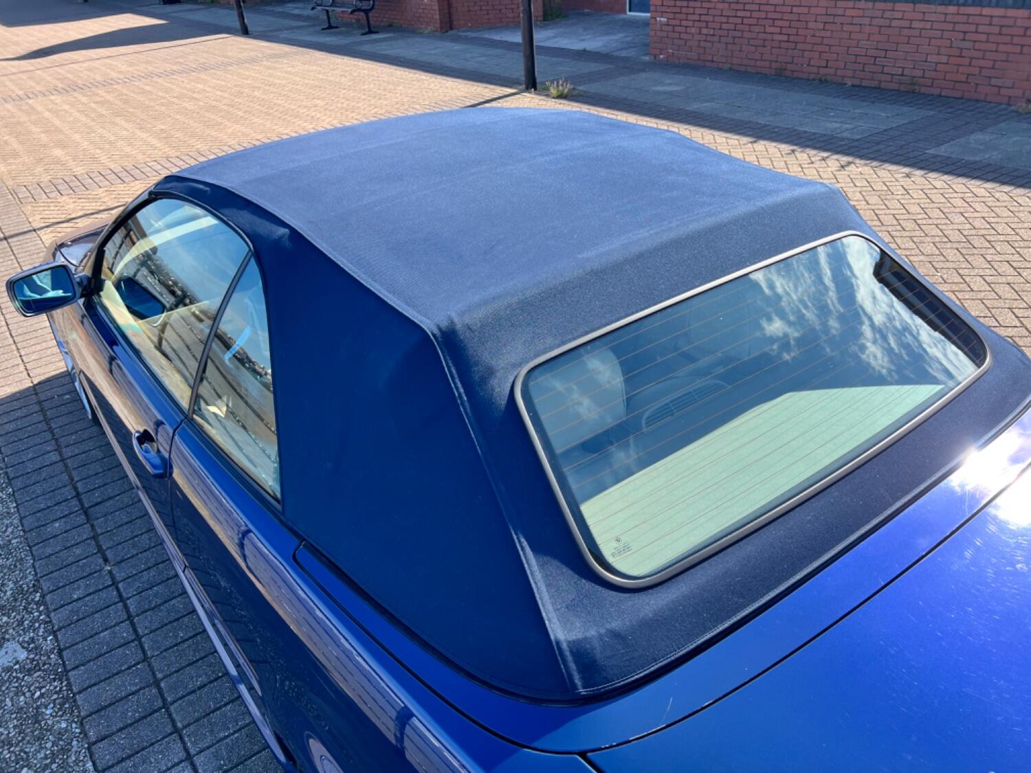 This stunning BMW 330 Ci Sport finished in Mystic Blue with Beige Leather is in excellent condition throughout. Clearly cherished throughout its life it is still a head turner after 22 years. The super smooth 3 litre straight 6 performs very well, as does the smooth shifting 5 speed auto gearbox. I bought this car in July and have covered 1,000 miles in it including a trip to Cornwall where it averaged 35 mpg. It has had a full service at BM Wirral along with 2 new genuine BMW front wings and all 4 wheels professionally refurbished. It has a great spec with power soft top, heated seats, air con, climate control, cruise control, rear parking sensors, wind deflector, xenon headlights and an aftermarket radio with DAB and bluetooth.