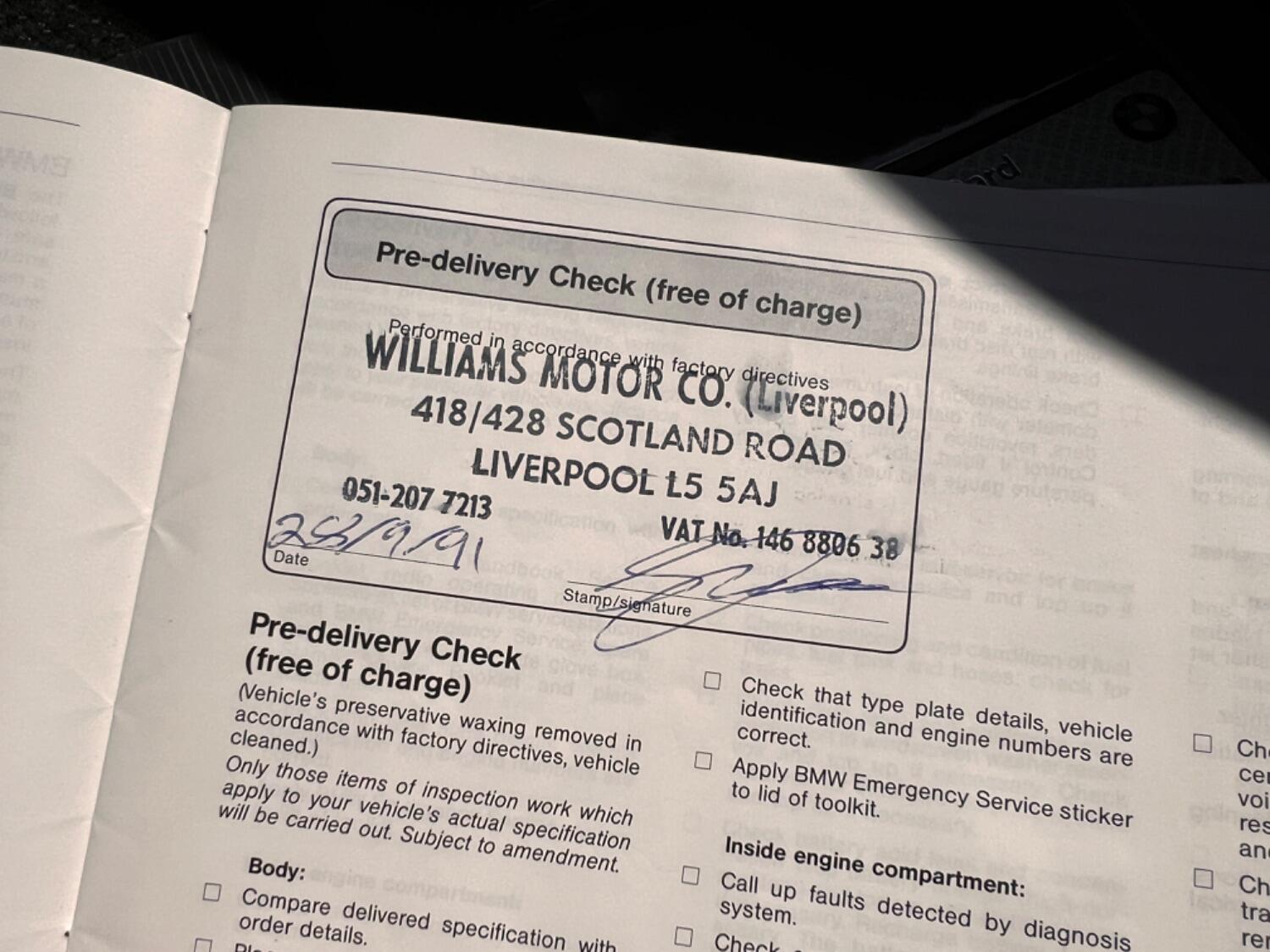 This exceptional example has had just one owner from new, he clearly cherished the car and that is reflected in its condition and service history. You would be hard pushed to find a 3 year old 3 series in this condition! It was garaged throughout his ownership and treated like a member of the family. There is a large file of documentation, detailing every service visit along with the original vehicle invoice from Williams Liverpool showing a new price of £16,247.39. A bronze 1985 318 was part exchanged for 4,700. Just two extras were specified, Granite Grey metallic paint and a dealer fit Pioneer 3730 radio cassette.