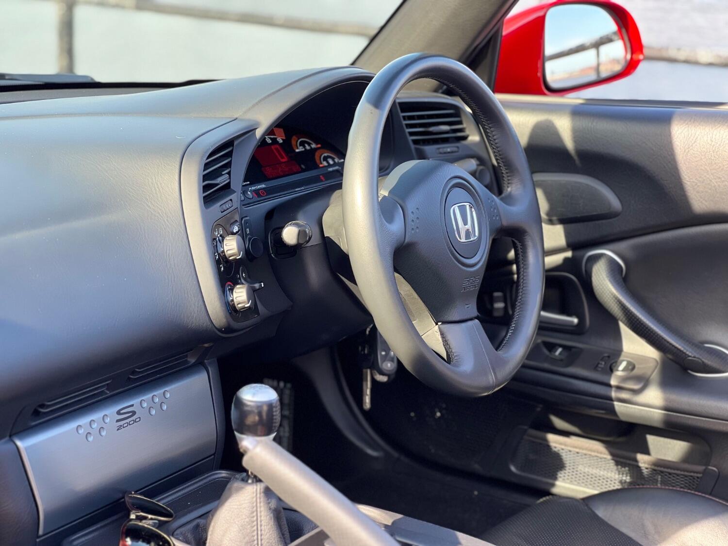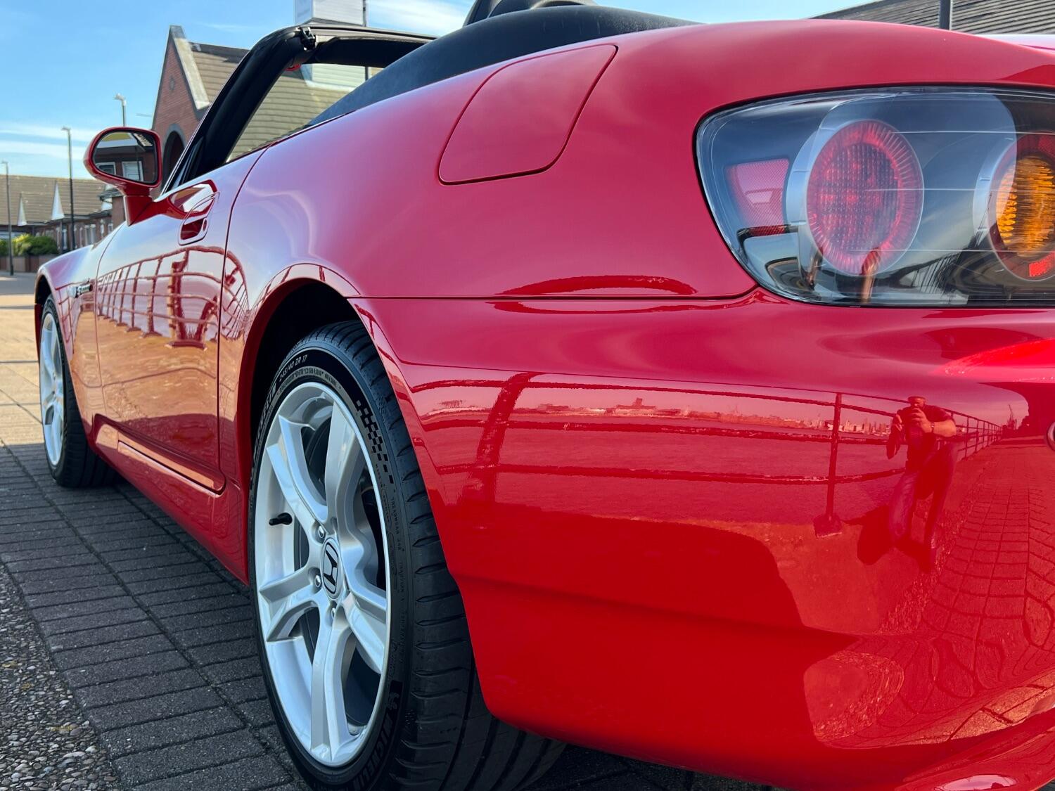 Finished in stunning bright red paintwork with black leather sports seats with red stitching. The options list on the S2000 was a short one but this car has front and rear parking sensors and fitted floor mats. It has recently had 4 new Michelin Pilot Sport 5 tyres and a service at the Honda main dealer. All service history is documented with invoices and stamps in the service book, serviced by Honda at 2k, 4k, 5k, 9k and 14k. The car is complete with all books and manuals, tools, spare wheel, hood cover, sales brochure and original sales brochure as well as 2 keys and 2 remotes. Part exchange welcome.