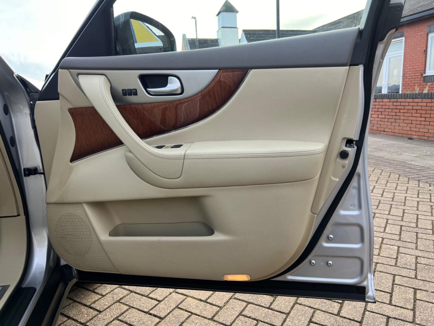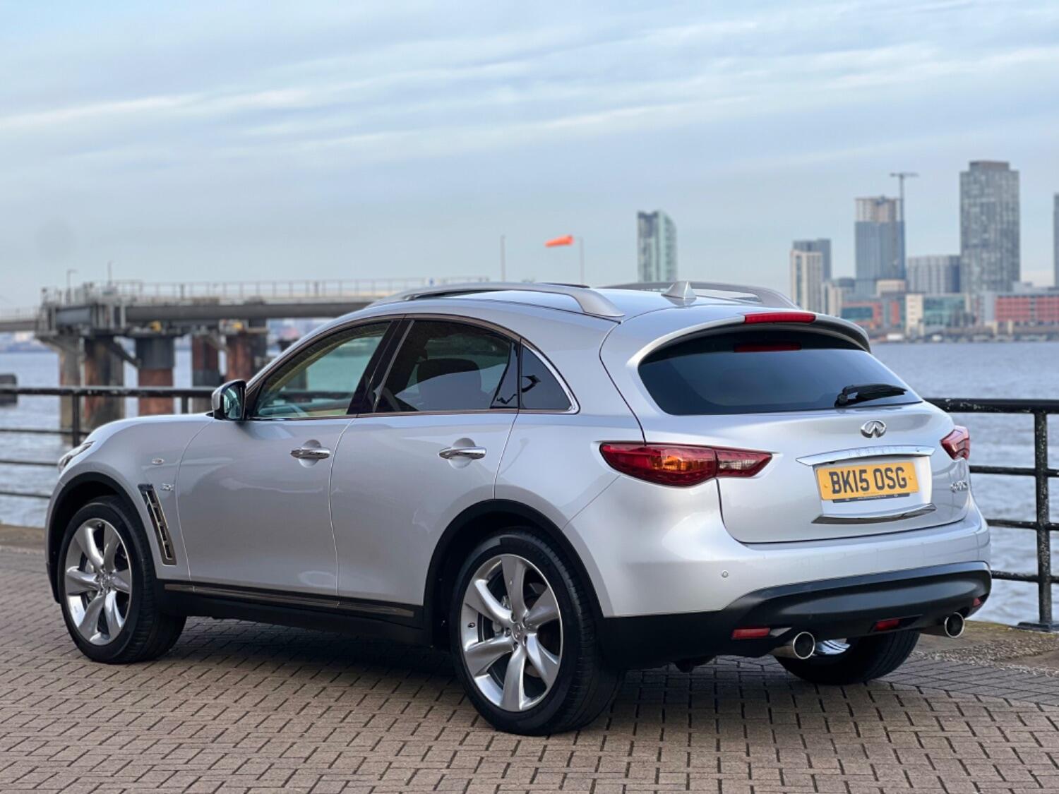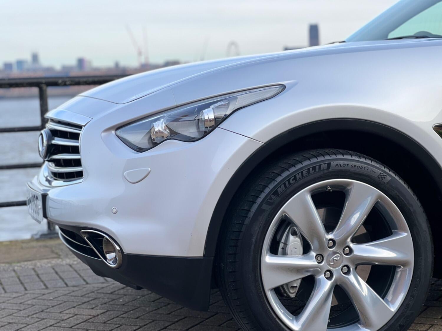 A fantastic amount of car for the money. This Infinity QX70 is in good condition throughout and has been owned by the last owner since 28,000 miles and used for a commute between the Wirral and Manchester. It has a great spec with heated and cooled seats, satellite navigation, front and rear parking sensors, xenon headlights, electric glass sunroof, cruise control, electric memory seats, power tailgate, 21 inch alloy wheels, privacy glass, switchable suspension, keyless entry and trip computer.