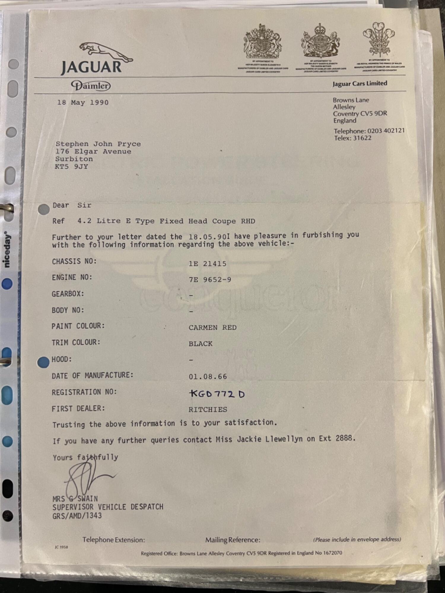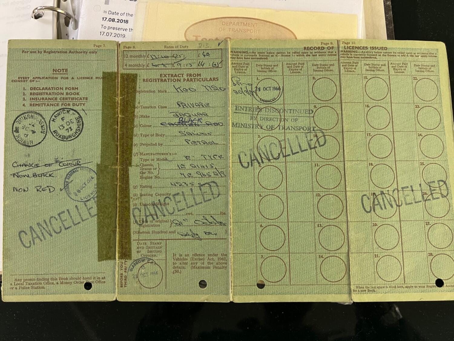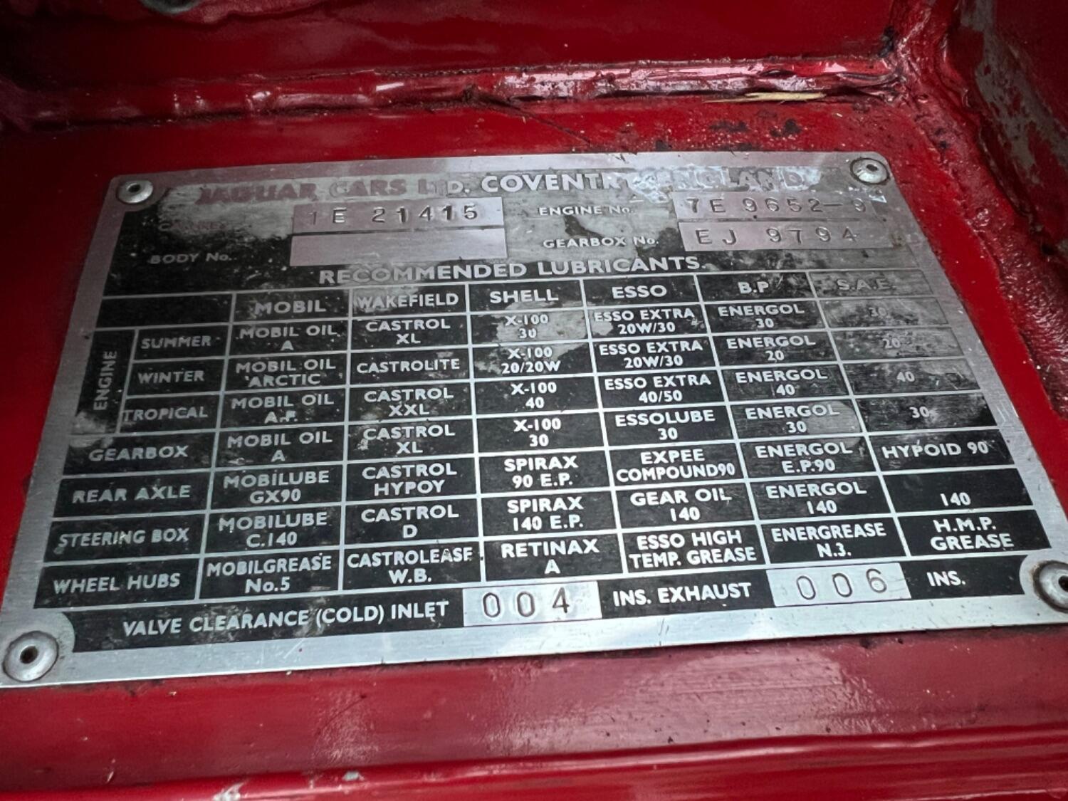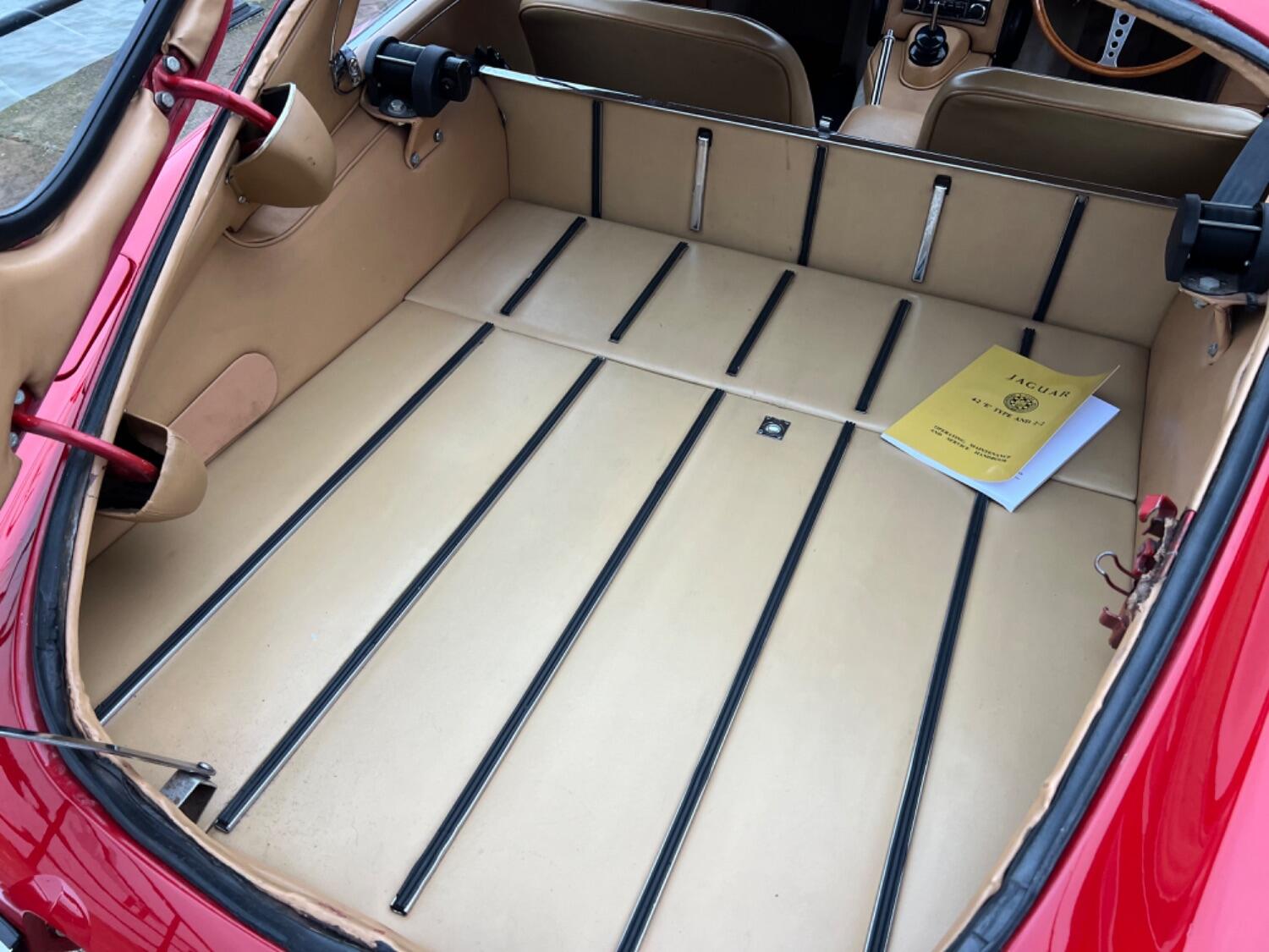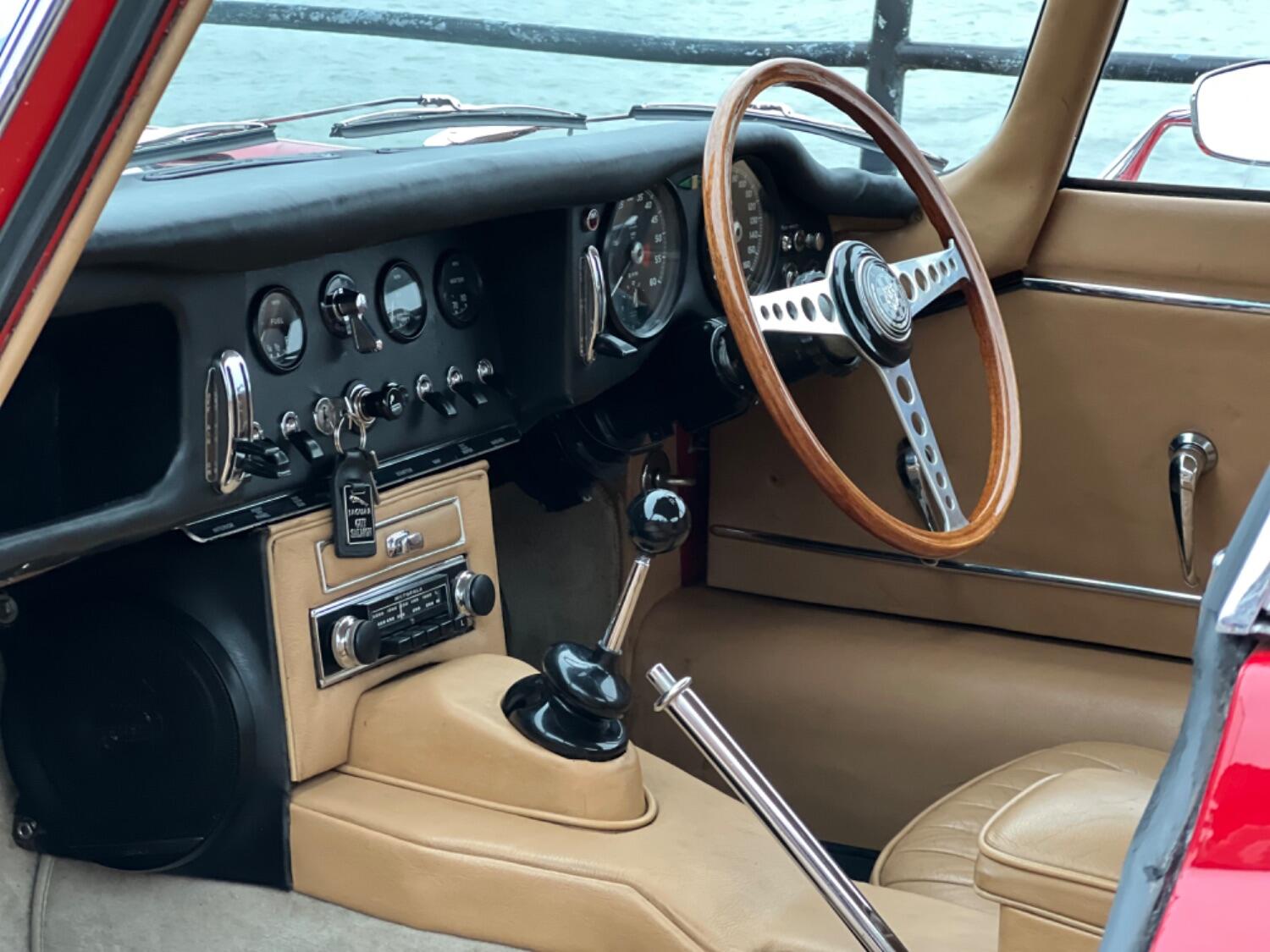 This original UK car was built on August 1st 1966, just 2 days after England's famous world cup victory. Spirits would have been high as this car rolled off the production line! It is finished in its original colour of Carmen red and with the help of the Jaguar Heritage certificate I can confirm that the car still has its original engine, head and gearbox. What is also unusual is that the mileage can be verified through the large history file. The first documented MOT dates from May 9th 1980 when the car had covered 79,146 miles. Subsequent MOT certificates show that the car was still in regular use until the late 80s when, as E type values rose, it was taken off the road for a bare metal restoration. It then saw minimal use as a restored car preserving its condition. In 2007 the engine received a full rebuild and has covered just 17,000 miles since. In the last 18 months, in the hands of a retired E-Type restorer.