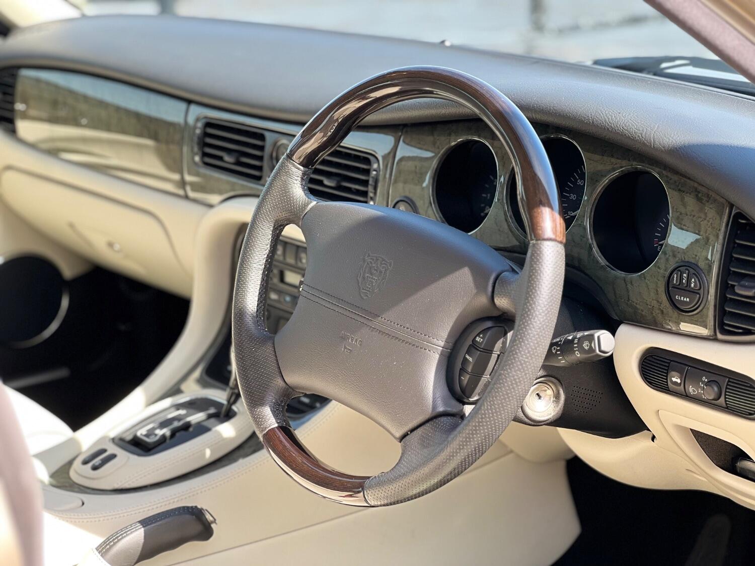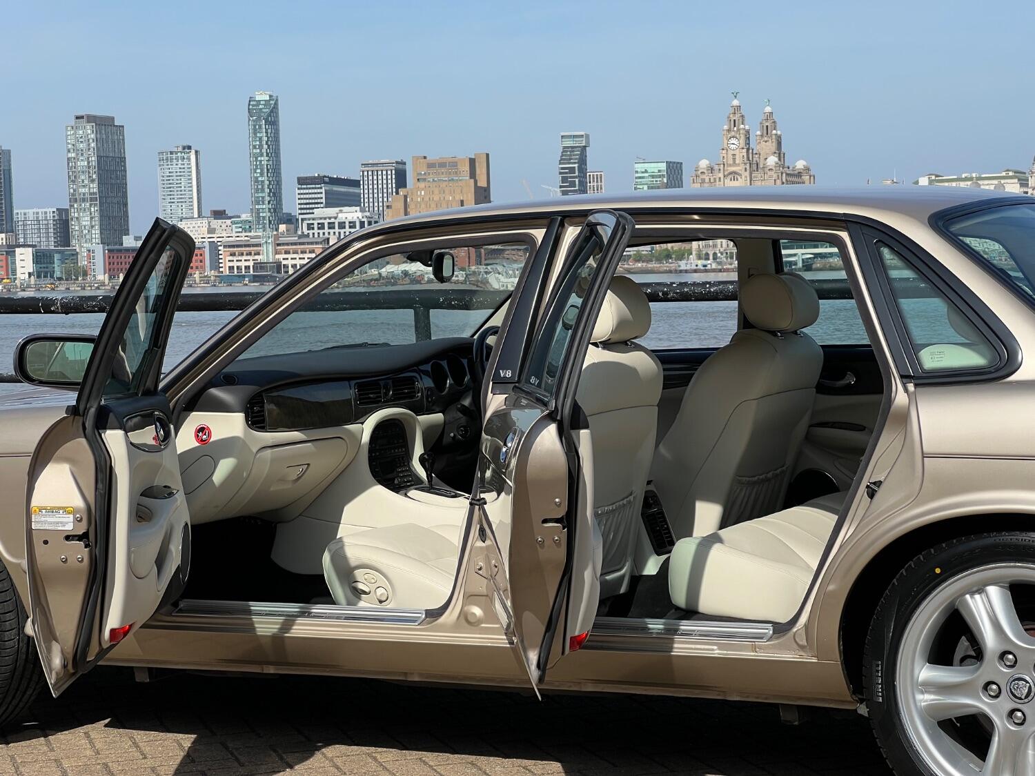 This stunning 2002 Jaguar XJ8 is the last of the steel bodied models and really the last of the traditional Jaguars. Finished in Topaz metallic with Ivory leather this car still turns heads. Sitting very low allowed these cars to have a soft, cosseting ride whilst still having exceptional handling thanks to their low centre of gravity. The 3.2 V8 offers surprising performance and is paired with a super smooth 5 speed automatic gearbox. As a late model this car came without the nikasil bore liners that plagued the earlier cars.
