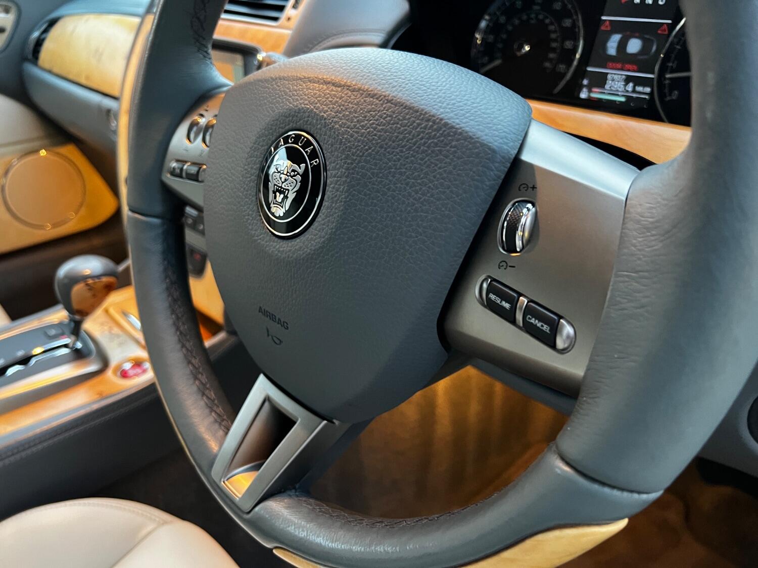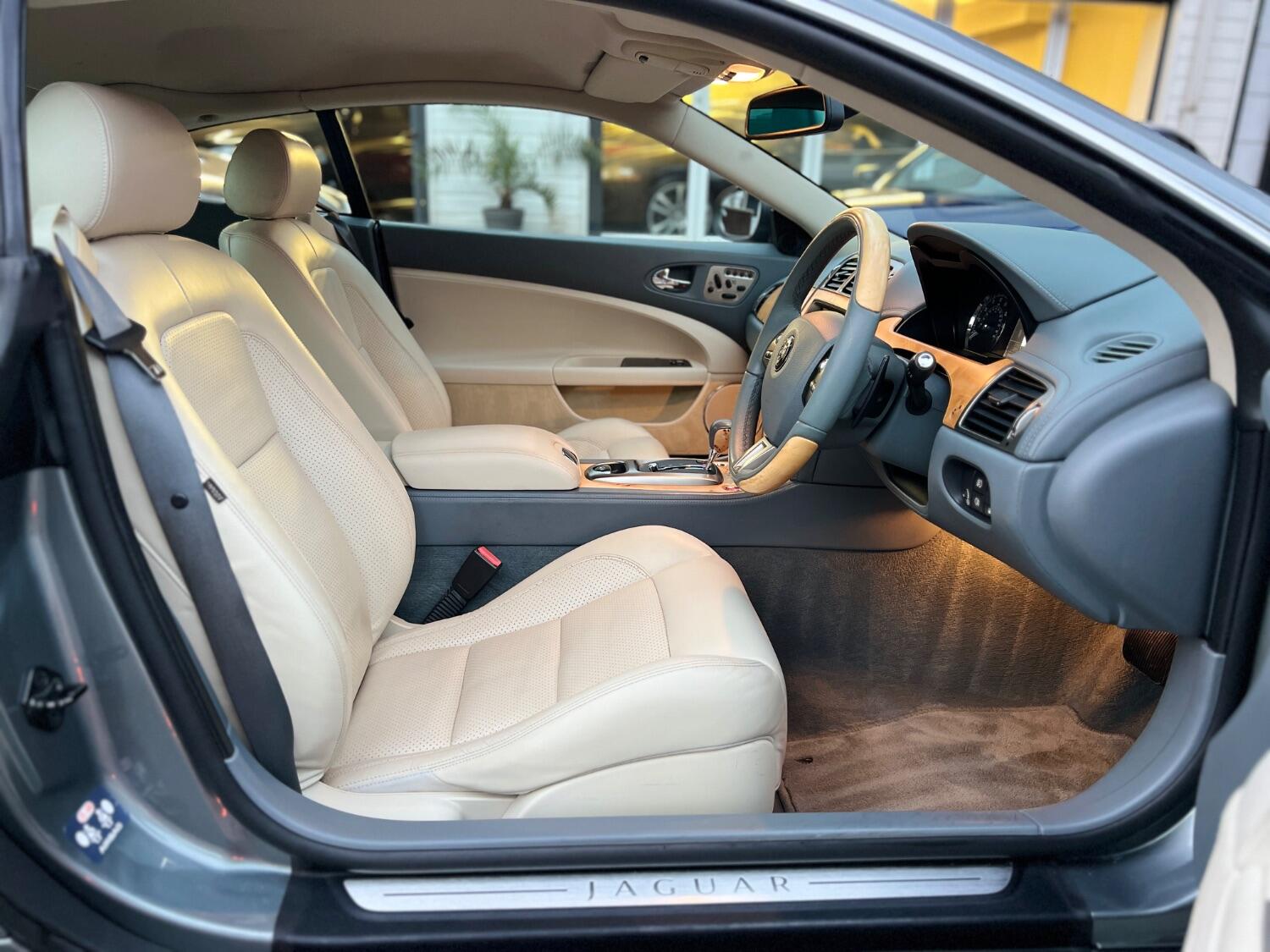 This beautiful Jaguar XK Coupe is in great order and is a pleasure to drive. Finished in Lunar Grey metallic with contrasting Ivory leather complemented by special order satin finish Poplar wood which extends to the steering wheel and gear selector. These superb cars are perfect as a daily driver or a weekend toy, the choice is yours. Exceptionally comfortable and with surprisingly acceptable fuel economy they are a great all rounder. Specification includes, luxury sports seats with 16 way adjustment, electric steering column, heated seats and steering wheel, automatic xenon headlights, bluetooth phone prep, front and rear parking sensors, CD player, cruise control, trip computer, sports setting with paddle shift, climate control and fitted floor mats.