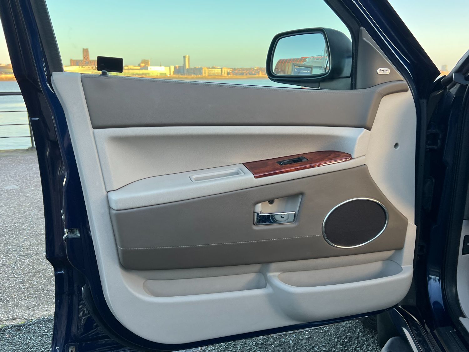 Blue metallic with Grey leather and Alcantara trim. As an Overland model it benefits from full exterior colour coding with aluminium accents and extended leather trim to dash top and door cards.  A very high spec model with electric glass sunroof, Satellite navigation, heated seats, electric memory drivers seat, BOSTON sound system, climate control, front and rear parking sensors, privacy glass, side steps, roof bars with aero rails.