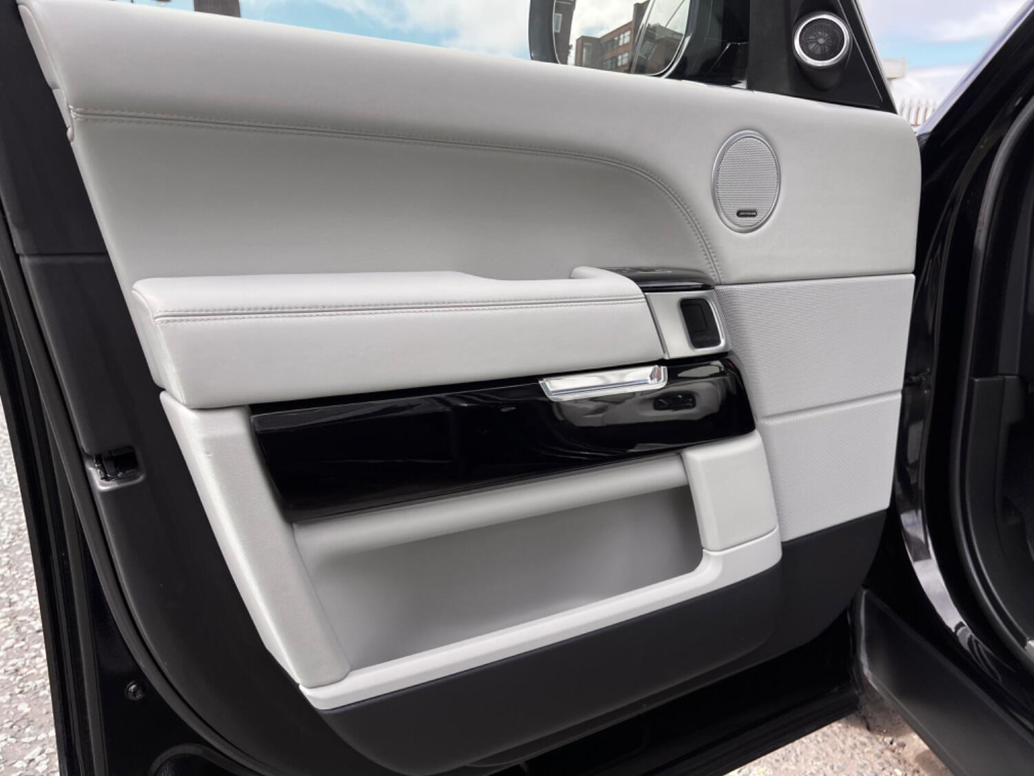 A stunning car in Java black with light grey leather. Factory 'Black Pack' which gives the car a very sleek look and it certainly stands out from the crowd. Great spec with keyless entry, heated and cooled front seats, 4 zone climate control, panoramic glass roof, xenon headlights, reversing camera, radar cruise control, adaptive air suspension, 22" alloy wheels, front fog lights, privacy glass, ambient light pack, power tail gate, power fold mirrors, satellite navigation, heated steering wheel and much more