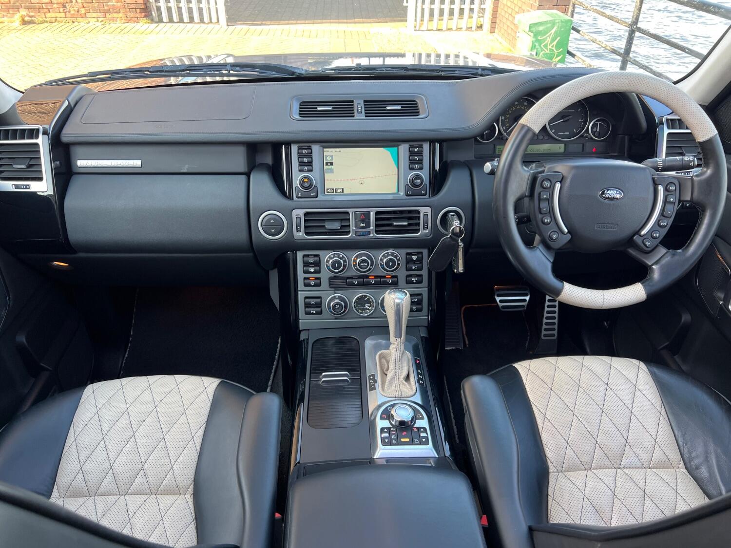 I'm a huge fan of this generation of Range Rover, they strike a perfect balance between the classic style and modern functionality. This car, finished in Stornoway Grey metallic has the superb 4.2 Supercharged V8 and all of the equipment you would expect with a Vogue SE including heated and cooled front seats, rear entertainment, directional bi-xenon headlights, Logic 7 Sound system, freeview TV, climate control, glass sunroof, privacy glass, electric memory seats, power folding mirrors and double glazing. In addition the car has been equipped with a full Overfinch kit (original invoice supplied) consisting of front and rear bumpers, side skirts, full cat back exhaust system, interior upgrade with black/ivory leather to seats, gear shifter and steering wheel, deep pile leather bound carpet mats, 22 inch Super Sport alloy wheels and engine power upgrade. The car looks very imposing and certainly stands out from the crowd.