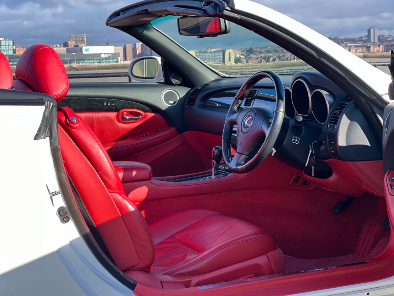 This stunning 2006 SC430 was a personal import last year direct from Japan. 1 UK owner. It is in exceptional condition throughout and most importantly for this model, totally rust free (see photos of underside). The colour Crystal white metallic is incredible in the sunlight with subtle hints of green and gold. It is set off by a red leather interior and black maple trim. The wheels are unmarked and the whole car is an absolute credit to its owner in Japan.