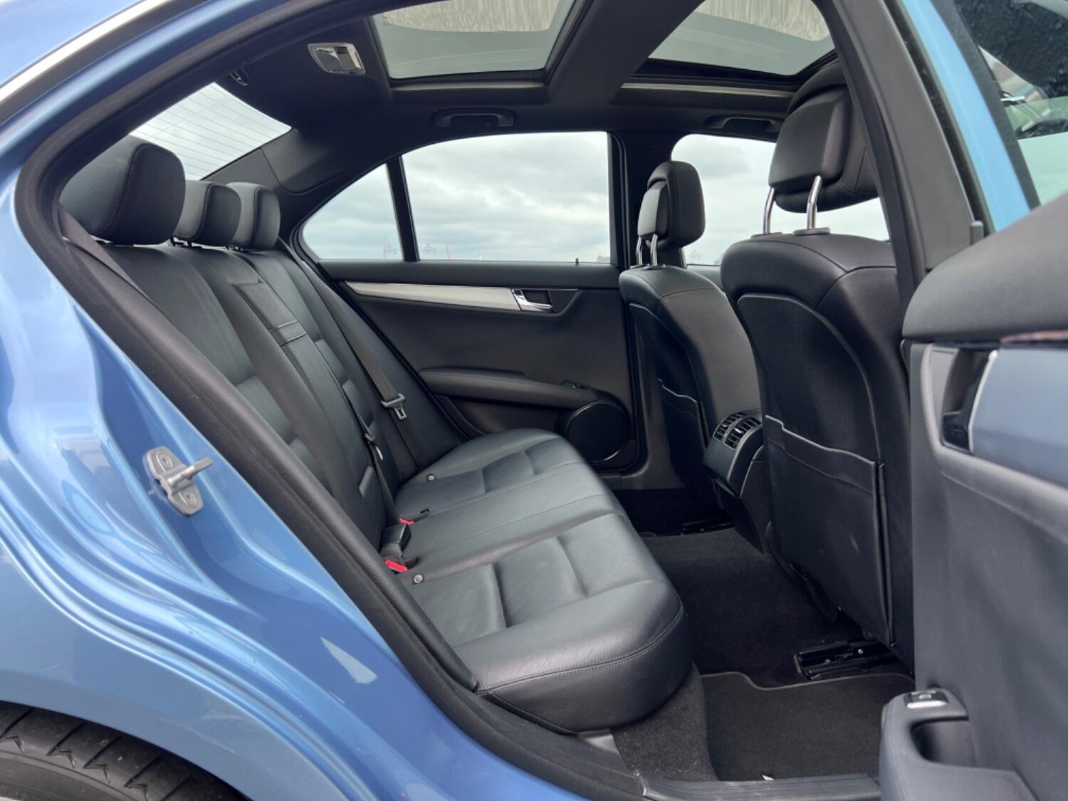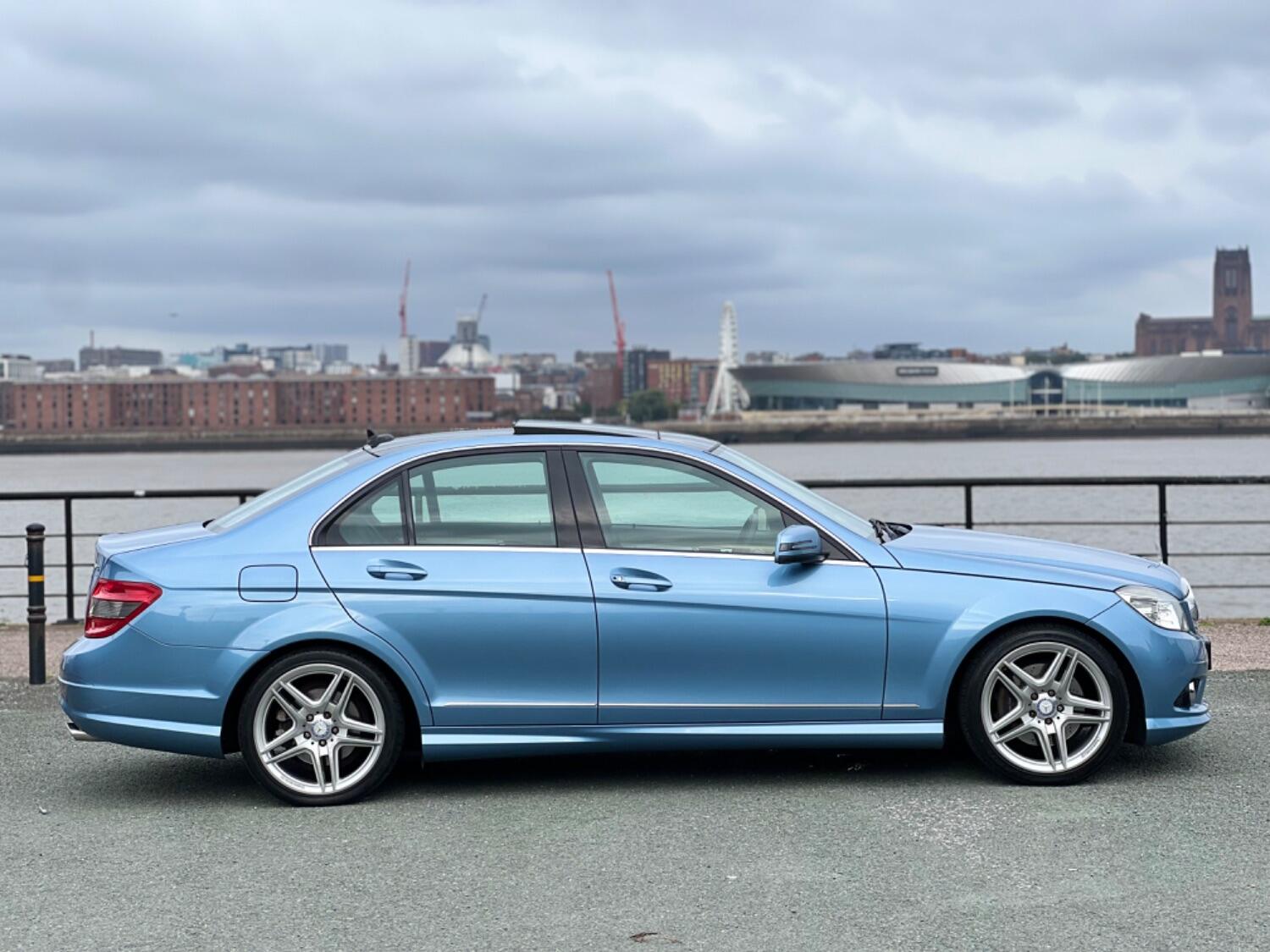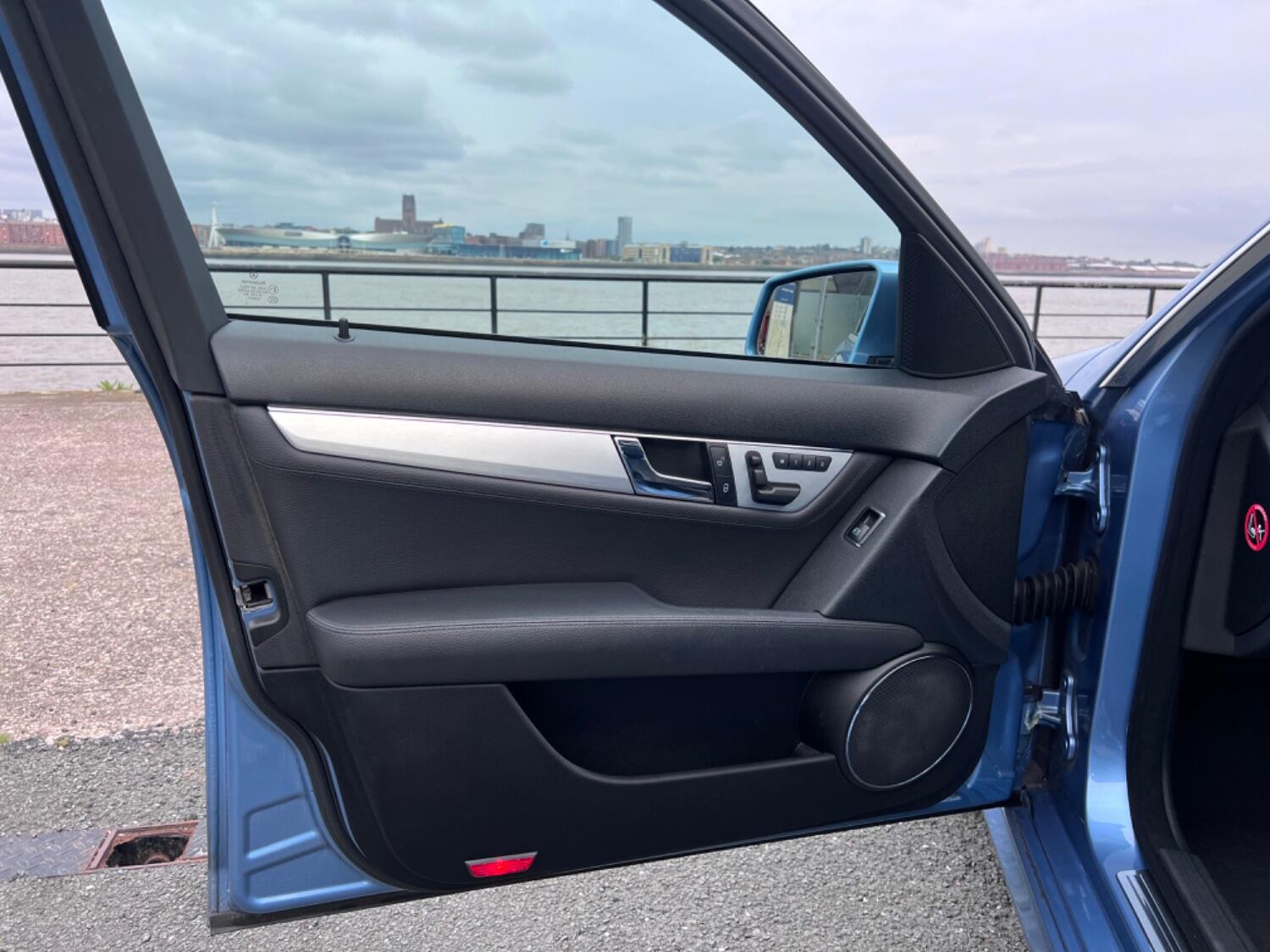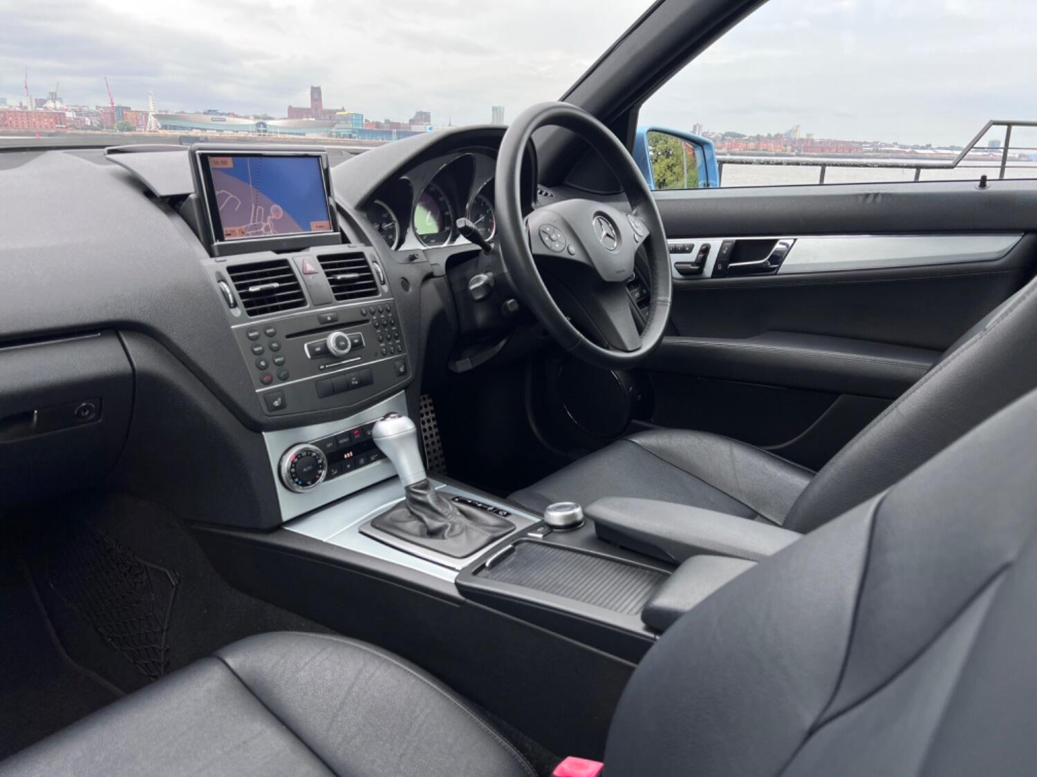 This stunning Mercedes C350 V6 petrol is finished in Indigo Lite blue metallic with black leather upholstery. A great specification from the factory with panoramic glass roof, full leather, heated seats, memory pack with electric memory front seats and steering column, satellite navigation, front and rear parking sensors, automatic lights and wipers, linguatronic, tyre pressure warning, power folding mirrors, AMG styling pack, 18" wheels, climate control, air conditioning, bluetooth phone prep and spare wheel with tools.