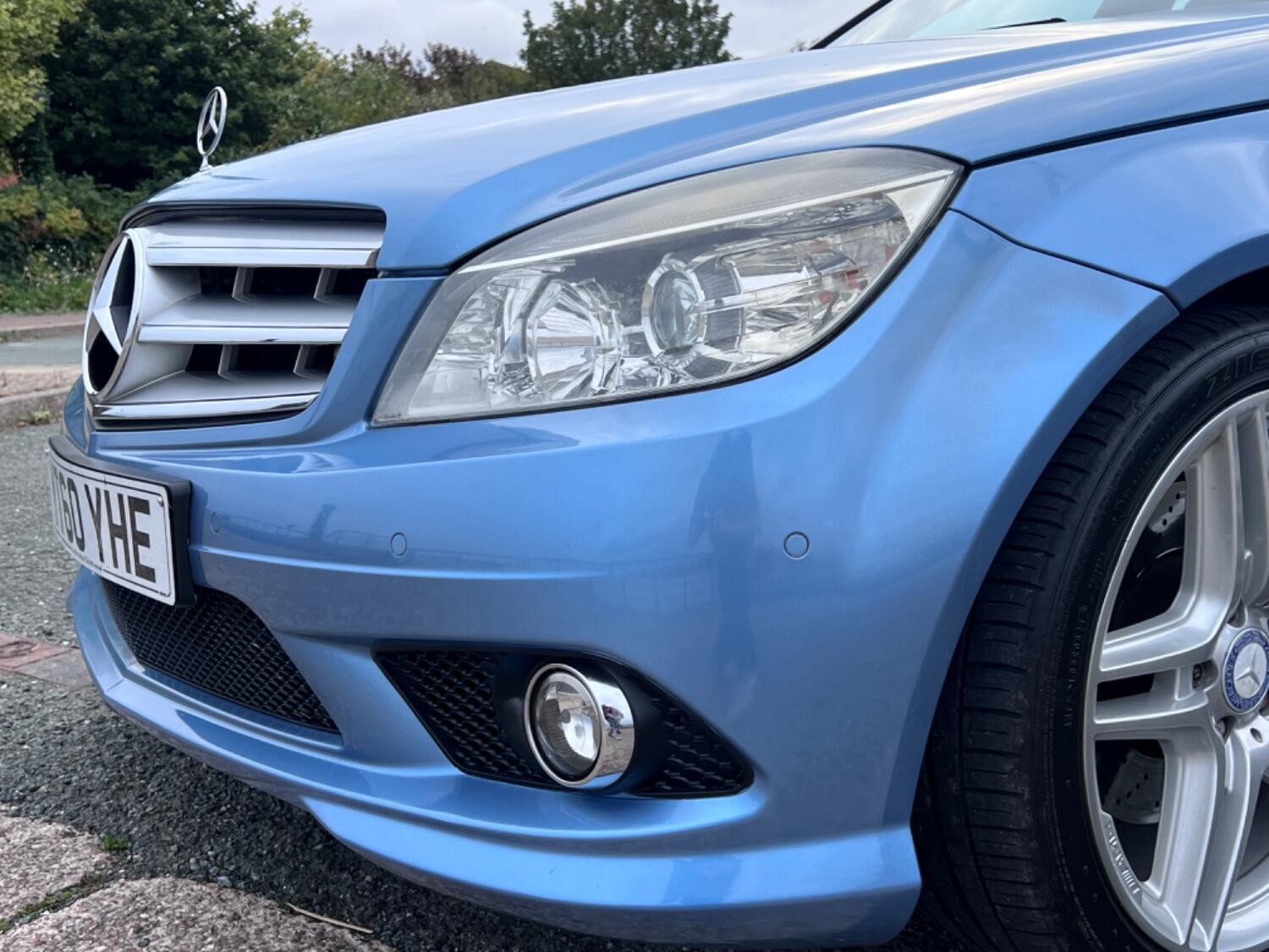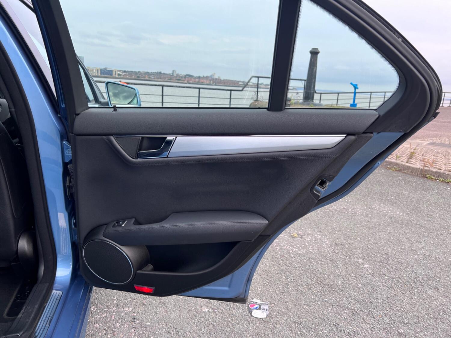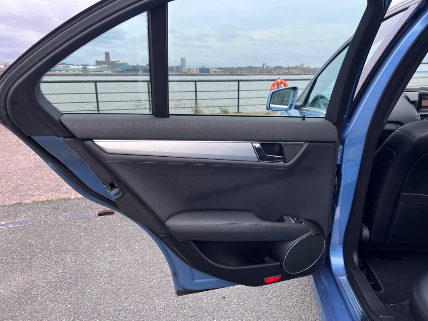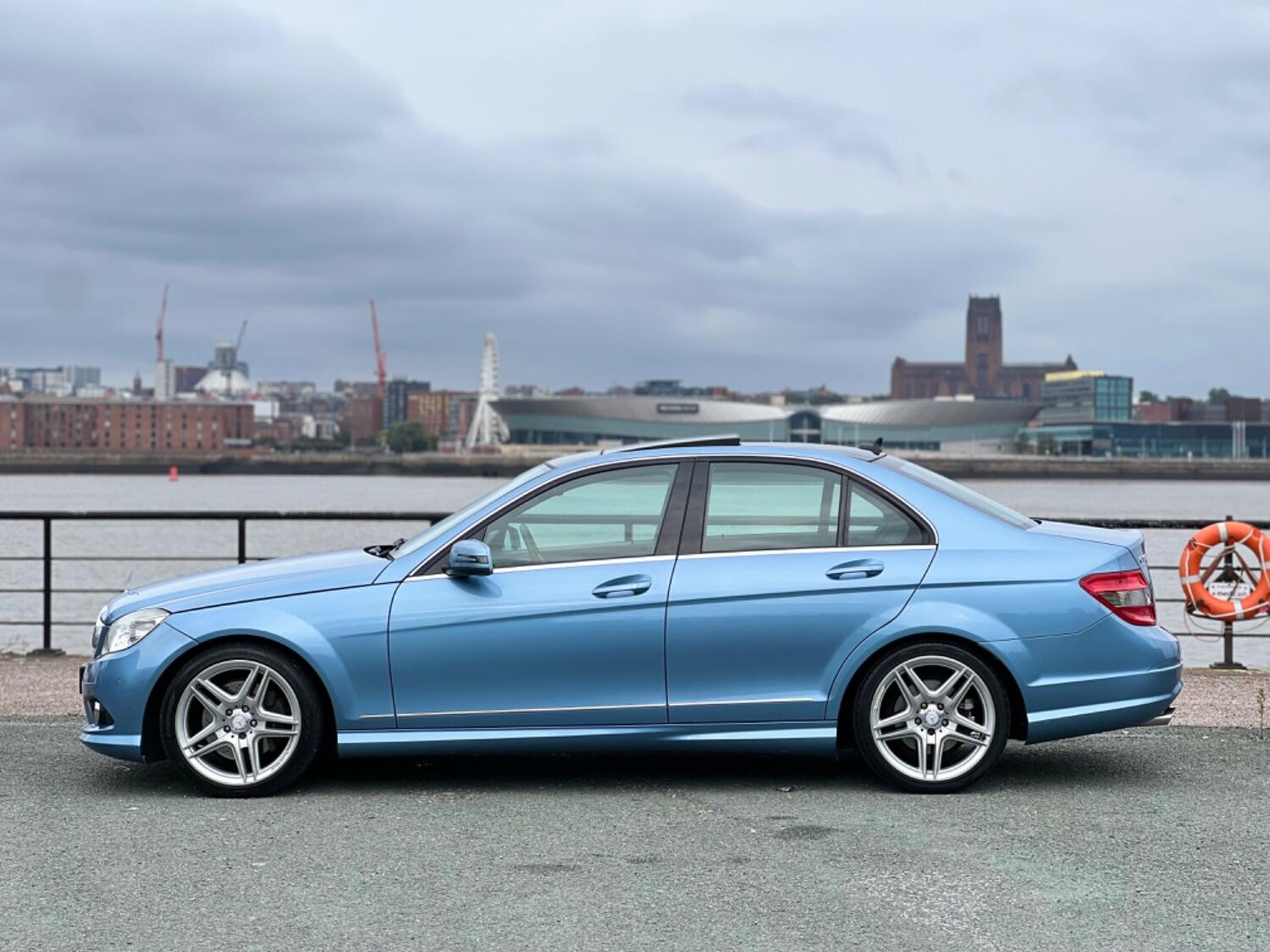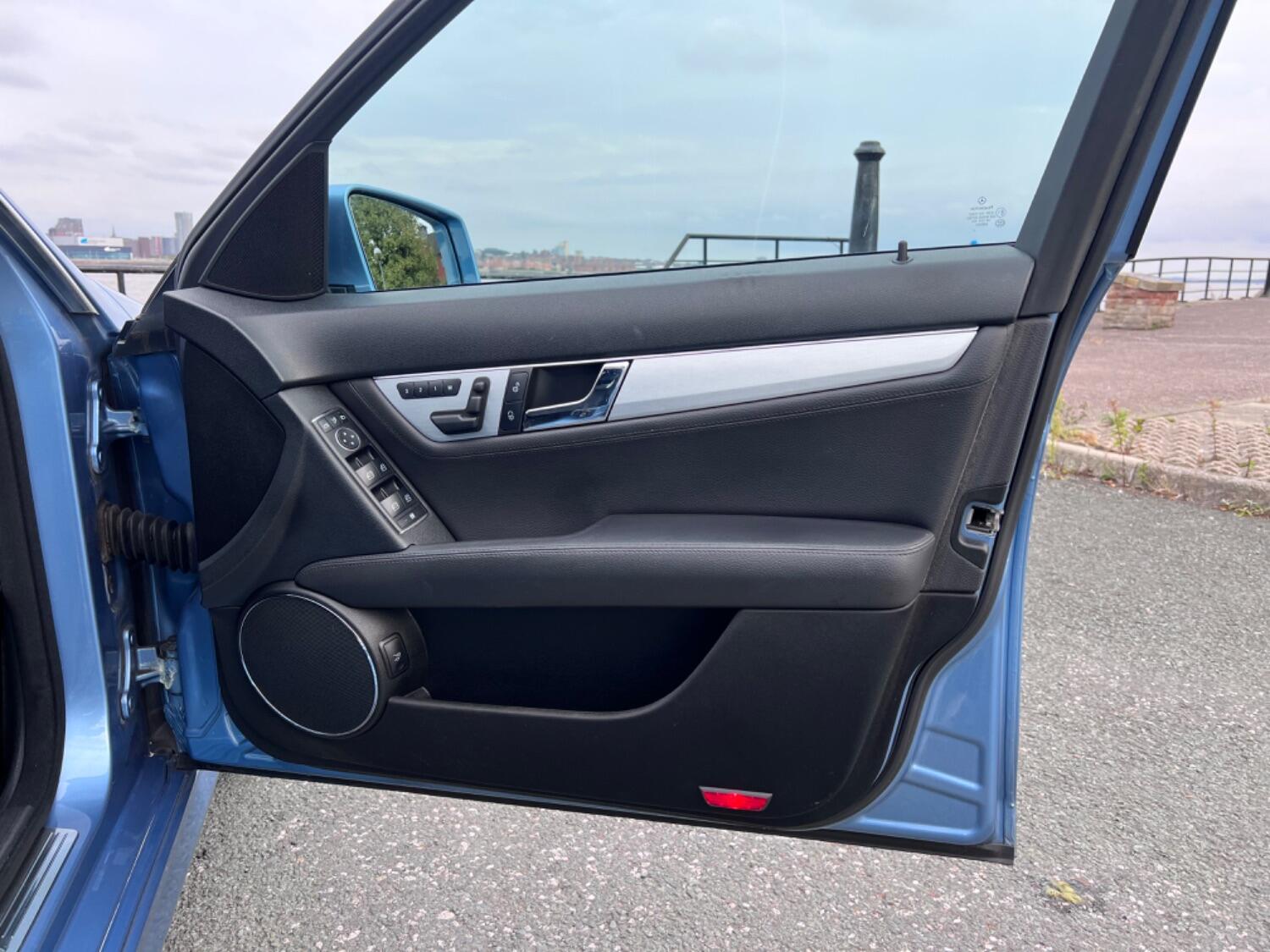 This stunning Mercedes C350 V6 petrol is finished in Indigo Lite blue metallic with black leather upholstery. A great specification from the factory with panoramic glass roof, full leather, heated seats, memory pack with electric memory front seats and steering column, satellite navigation, front and rear parking sensors, automatic lights and wipers, linguatronic, tyre pressure warning, power folding mirrors, AMG styling pack, 18" wheels, climate control, air conditioning, bluetooth phone prep and spare wheel with tools.
