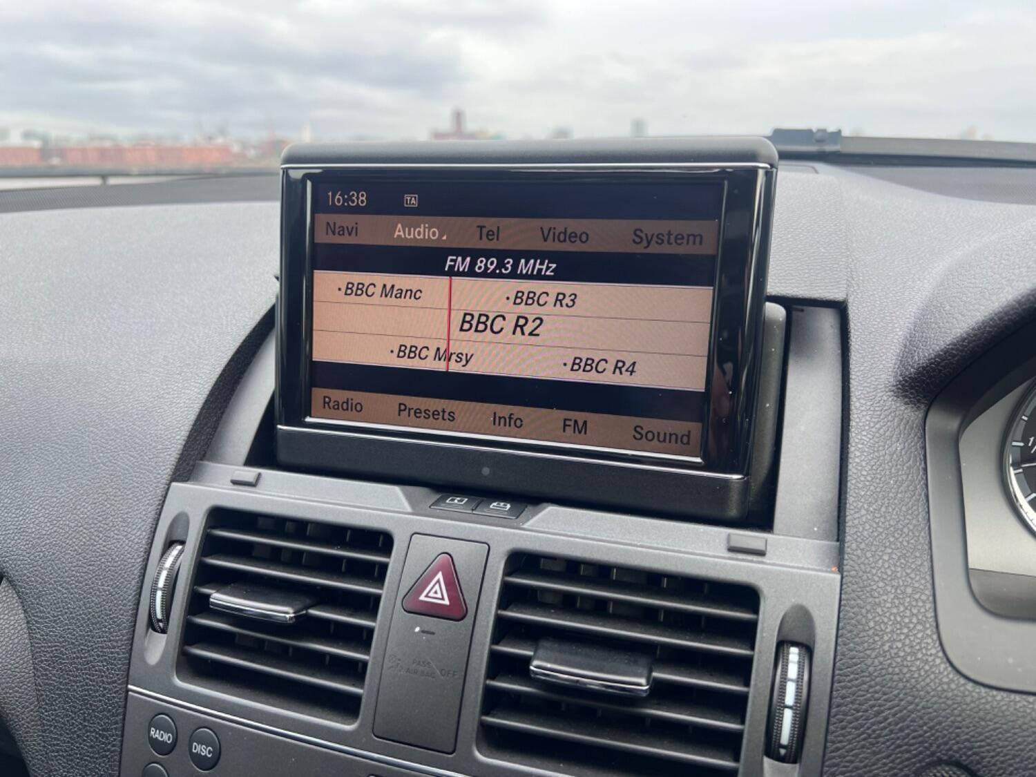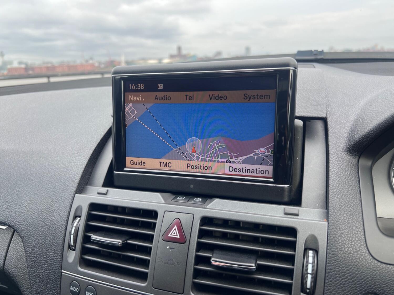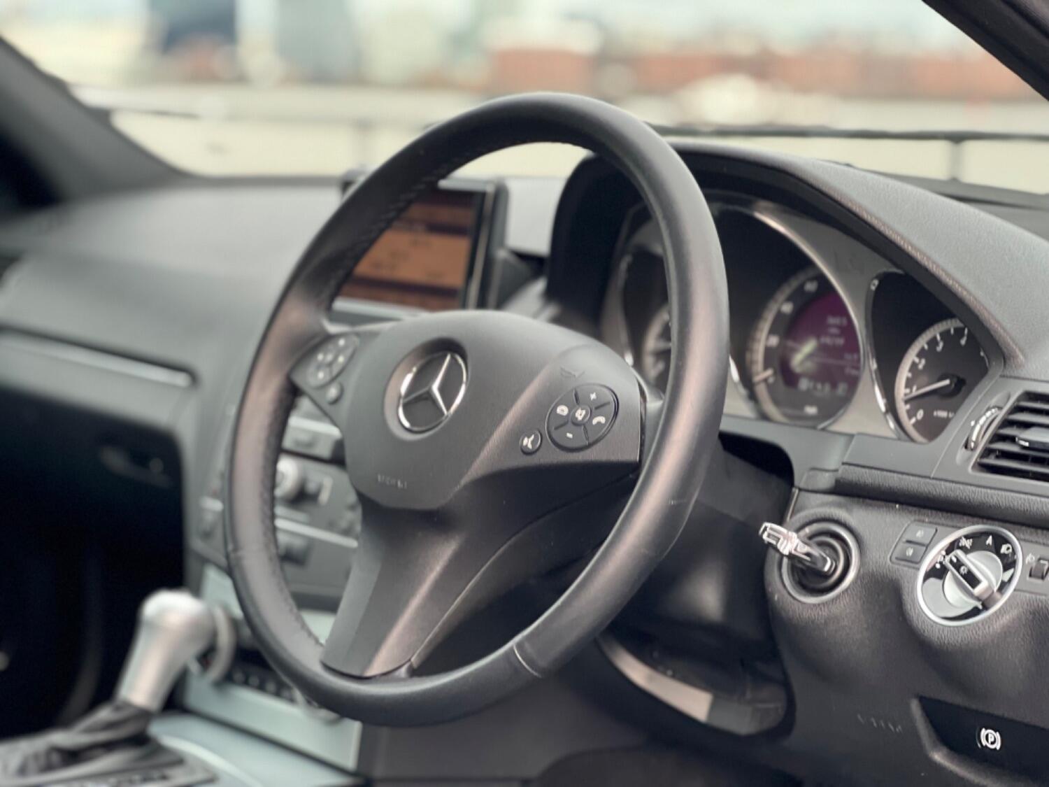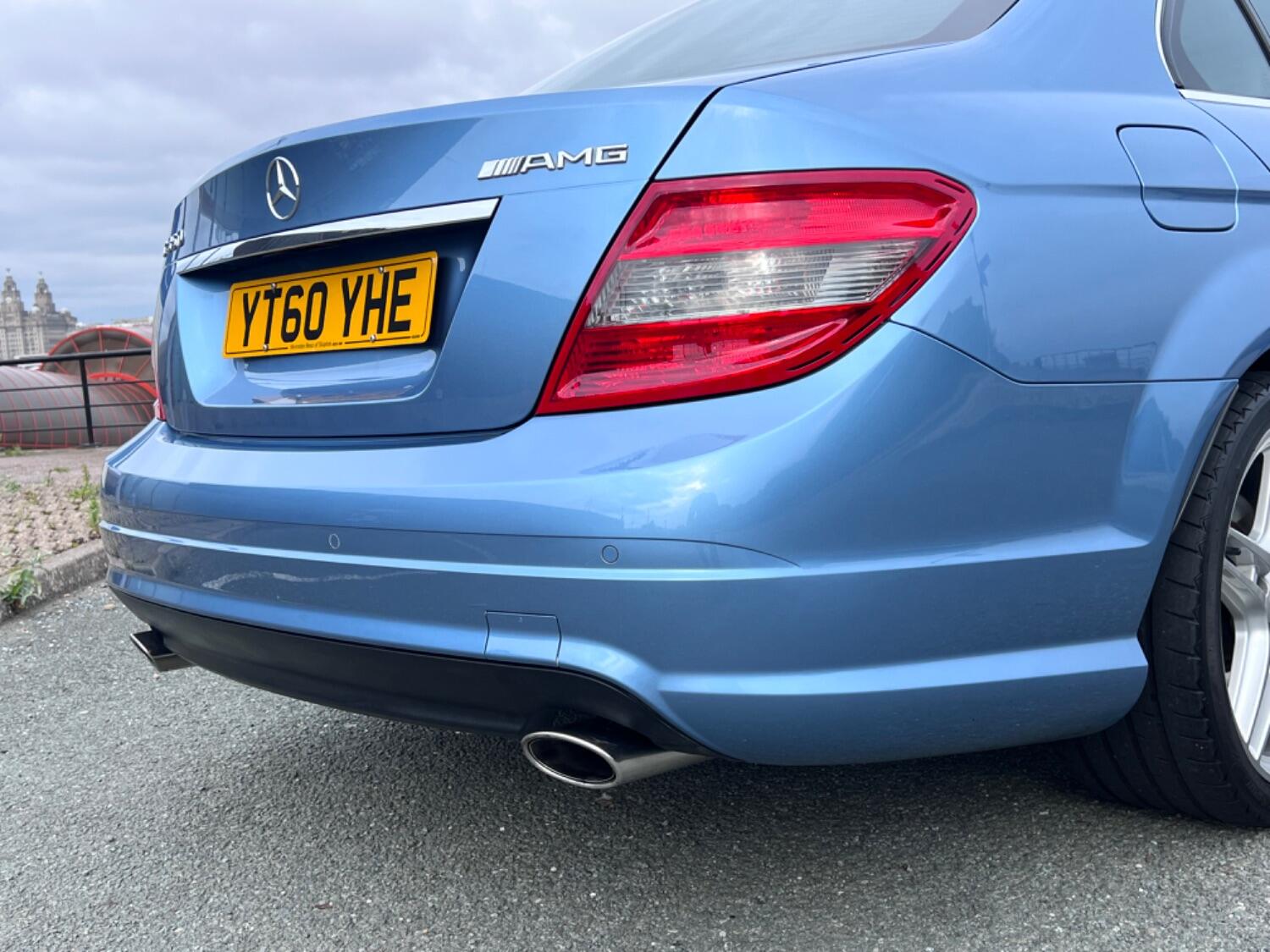 This stunning Mercedes C350 V6 petrol is finished in Indigo Lite blue metallic with black leather upholstery. A great specification from the factory with panoramic glass roof, full leather, heated seats, memory pack with electric memory front seats and steering column, satellite navigation, front and rear parking sensors, automatic lights and wipers, linguatronic, tyre pressure warning, power folding mirrors, AMG styling pack, 18" wheels, climate control, air conditioning, bluetooth phone prep and spare wheel with tools.