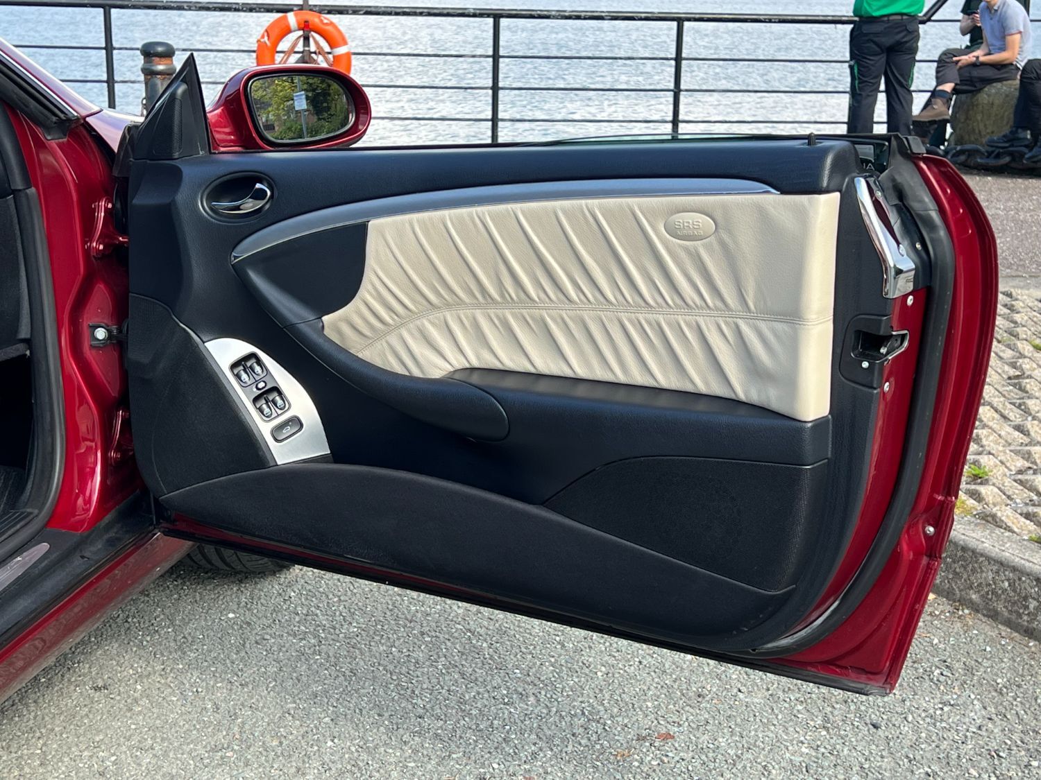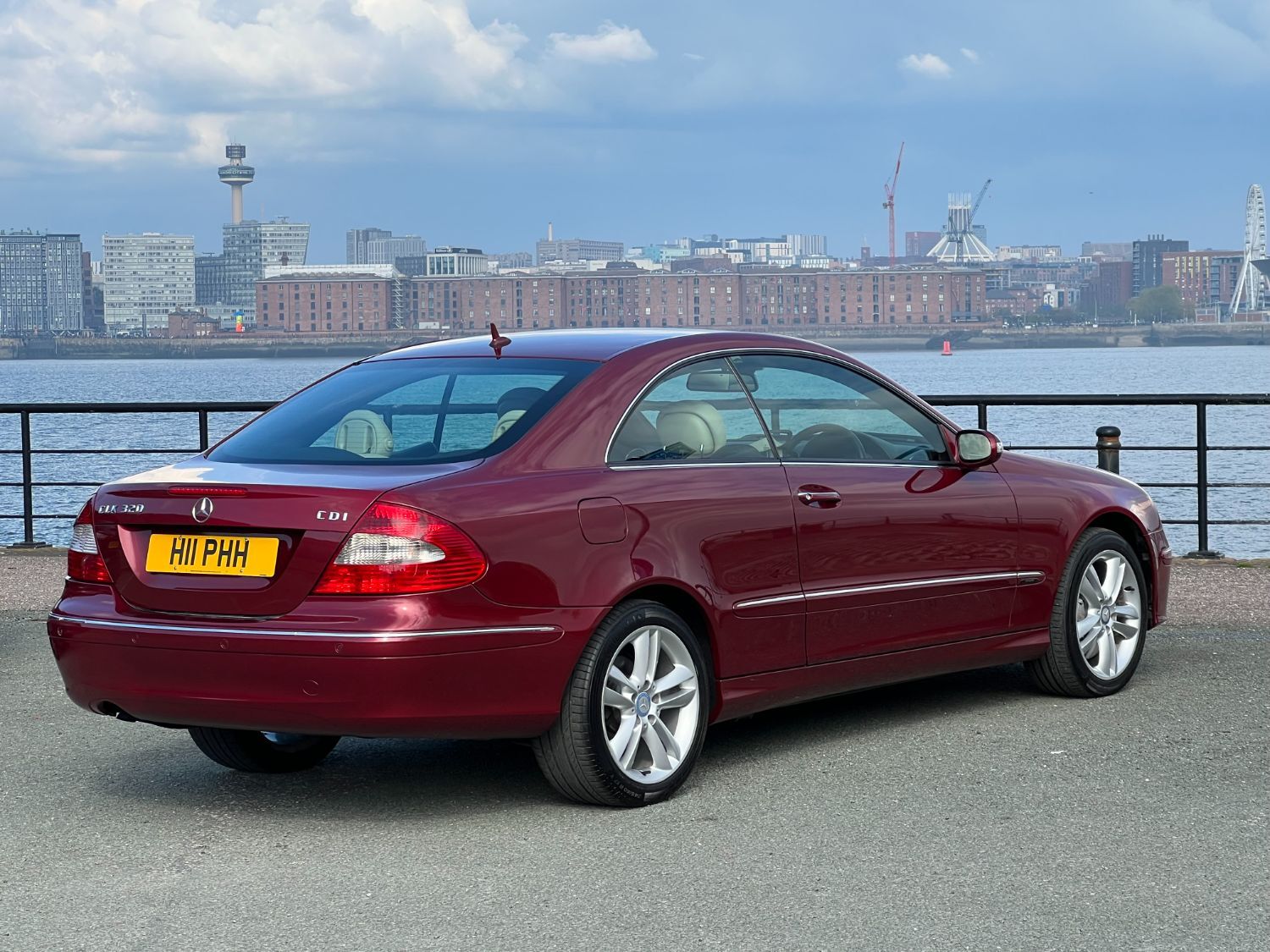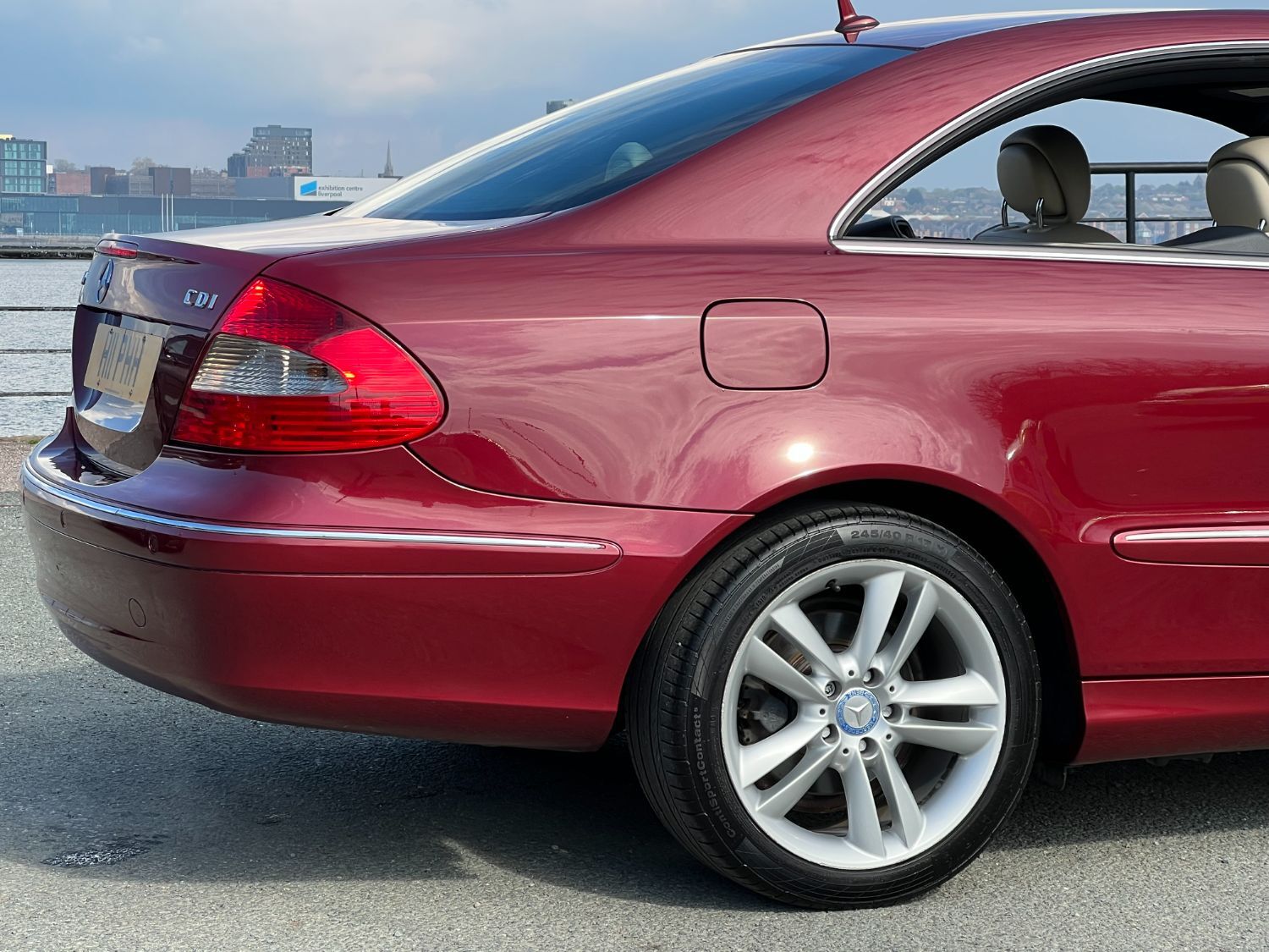 A stunning looking Mercedes CLK finished in Thulite Red with contrasting light leather. This car has the fantastic 3 litre V6 turbo diesel capable of powering the stylish coupe to 60 mph in 7 seconds and potentially returning 45 mpg. Equipment includes climate control, front and rear parking sensors, bluetooth phone prep, auto lights, power folding mirrors, CD player, 17* alloy wheels, cruise control and multi function steering wheel.