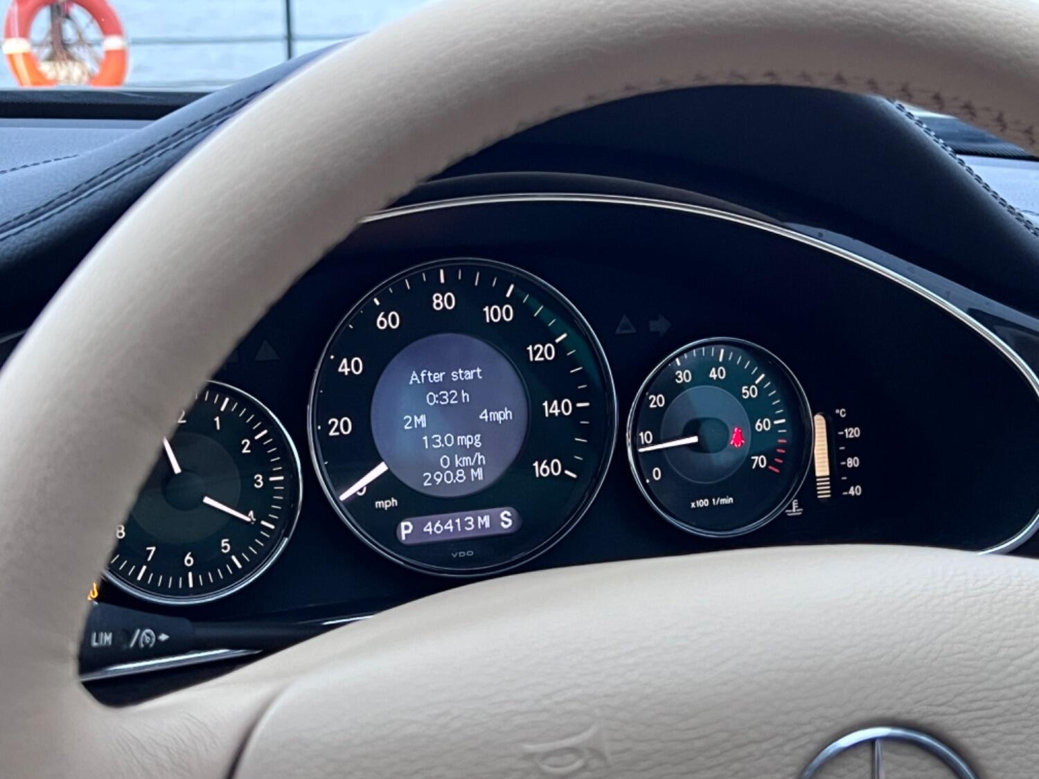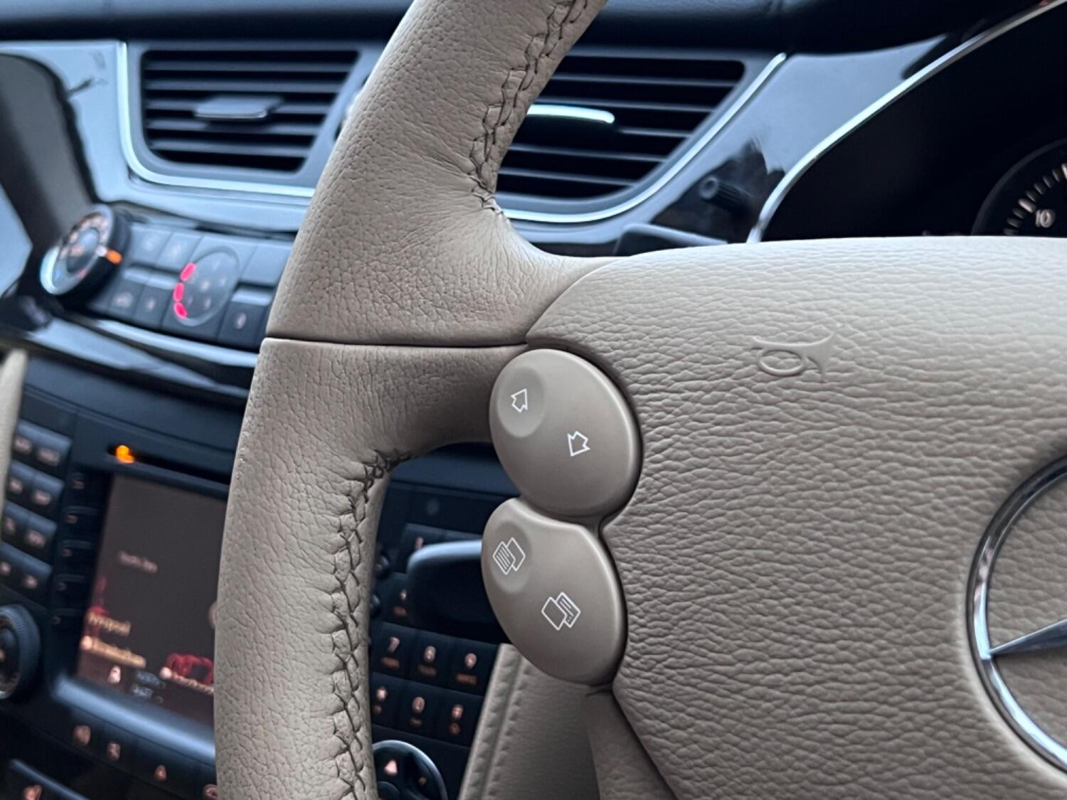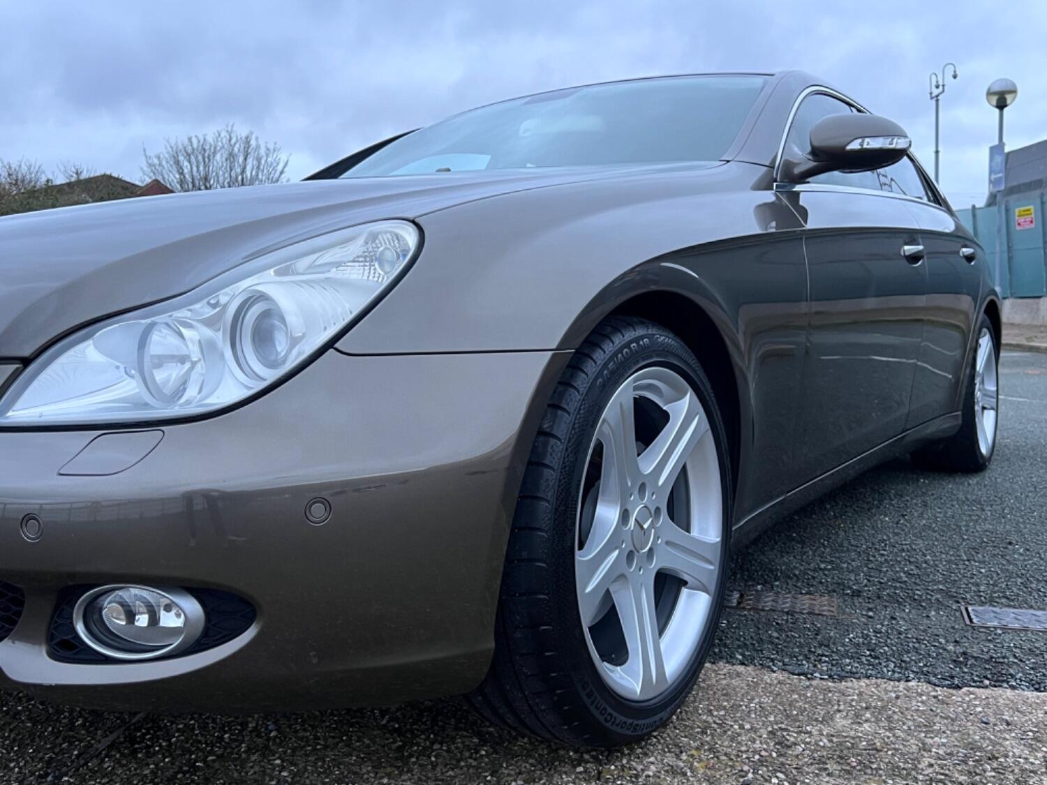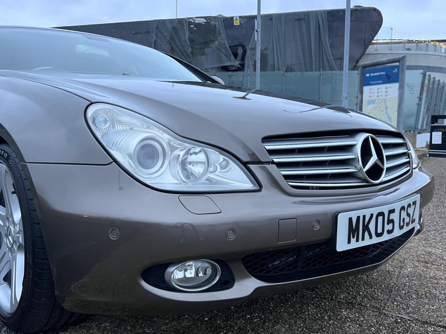 This very handsome 2005 Mercedes CLS is in beautiful condition throughout. With the super smooth 3.5 V6 engine coupled to a 7 speed automatic gearbox this is a proper luxury car. Beautiful colour combination of Indium Grey Metallic with Cashmere beige leather complemented by high gloss laurel wood. Specification includes electric seats, bi-xenon headlights, front and rear parking sensors, bluetooth phone prep, CD changer, AUX plug, heated seats, COMAND sat nav, cruise control, 18" alloy wheels, trip computer, power fold door mirrors and fitted floor mats.