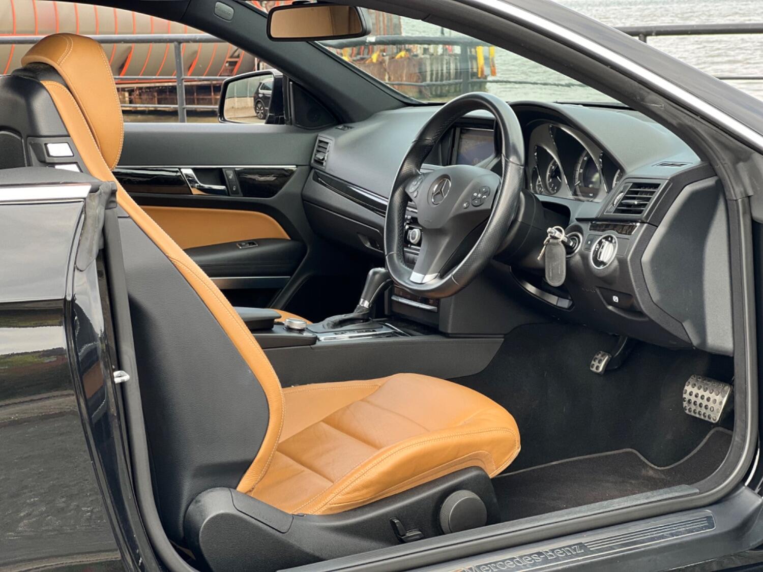 This head turning E Class coupe has had just one private owner from new. Finished in Obsidian Black Metallic with Tan leather sports trim it stands out from the crowd and attracts plenty of admiring glances. Specified with Satellite Navigation, heated seats, digital climate control, xenon headlights, front and rear parking sensors, cruise control, power folding mirrors, auto wipers, removable tow bar and trip computer. The pillerless design still looks fresh and the car is a pleasure to be behind the wheel of.