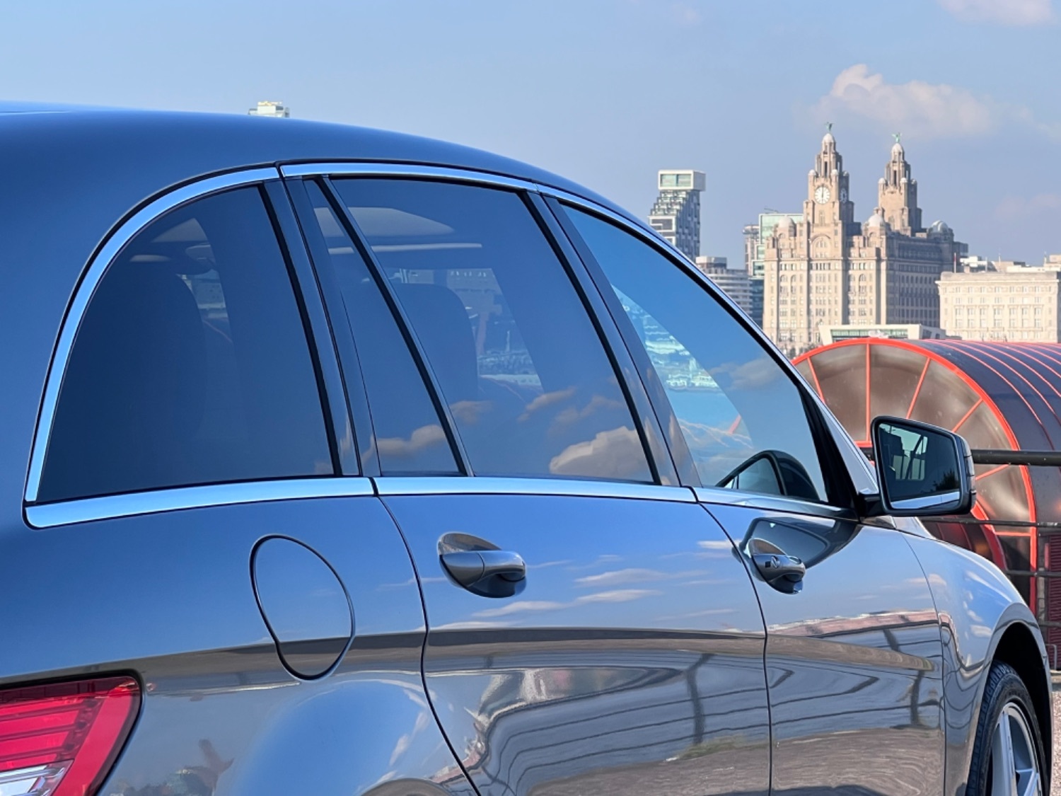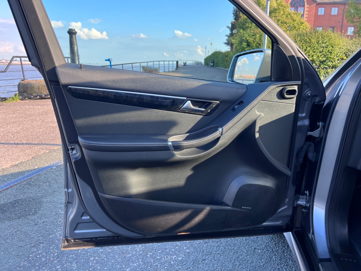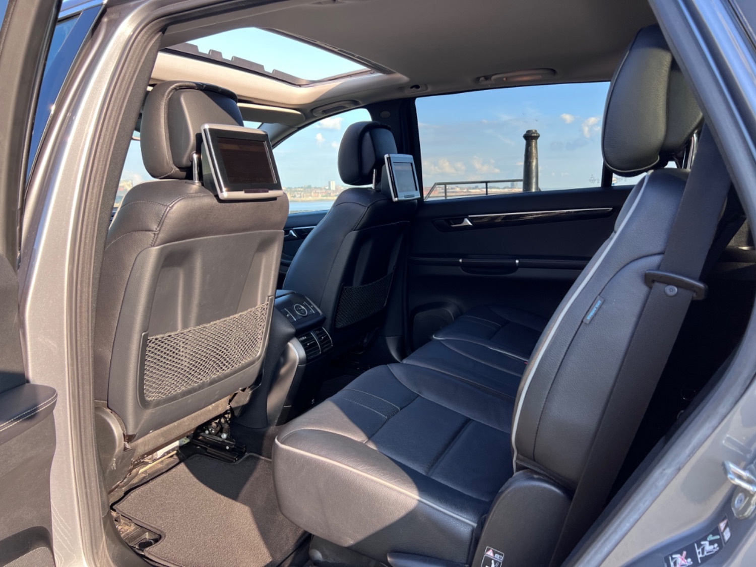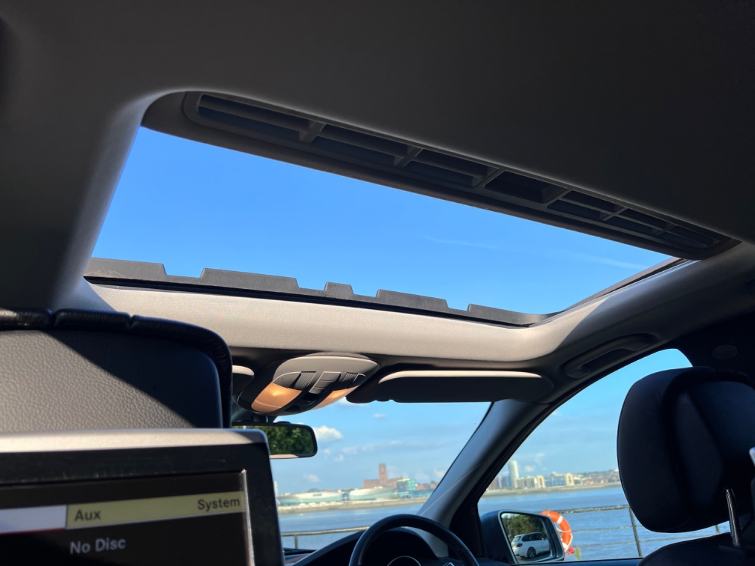 This fantastic one owner example is in excellent condition throughout with a full service history. Highly optioned when new with rear DVD entertainment system complete with Mercedes remote and head phones, glass sunroof, full black leather seats piped in grey, Airmatic air suspension with comfort and sport settings, 21" AMG alloy wheels, xenon headlights, LED daytime running lights, rear privacy glass, power tailgate, Harmon/Kardon sound system, memory seats and steering column, heated front and rear seats, 3 zone climate control, Sport body styling, Bluetooth, satellite navigation, front and rear parking sensors, reversing camera and metallic paint.