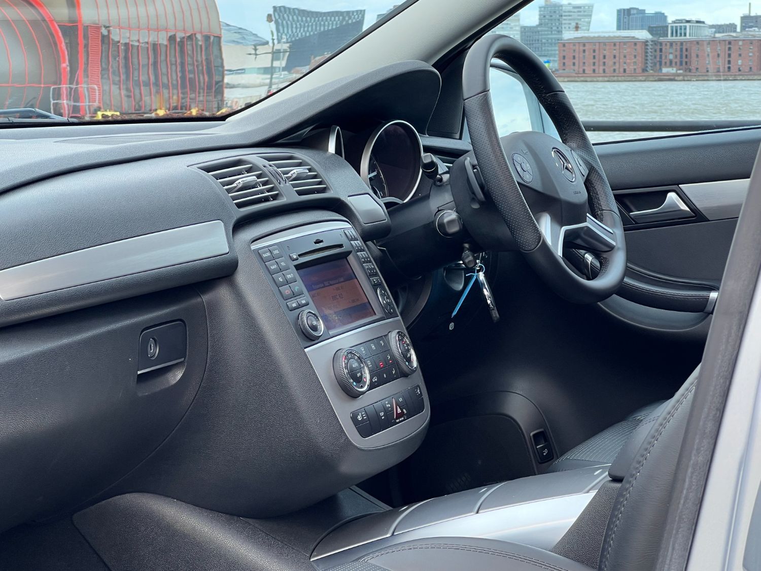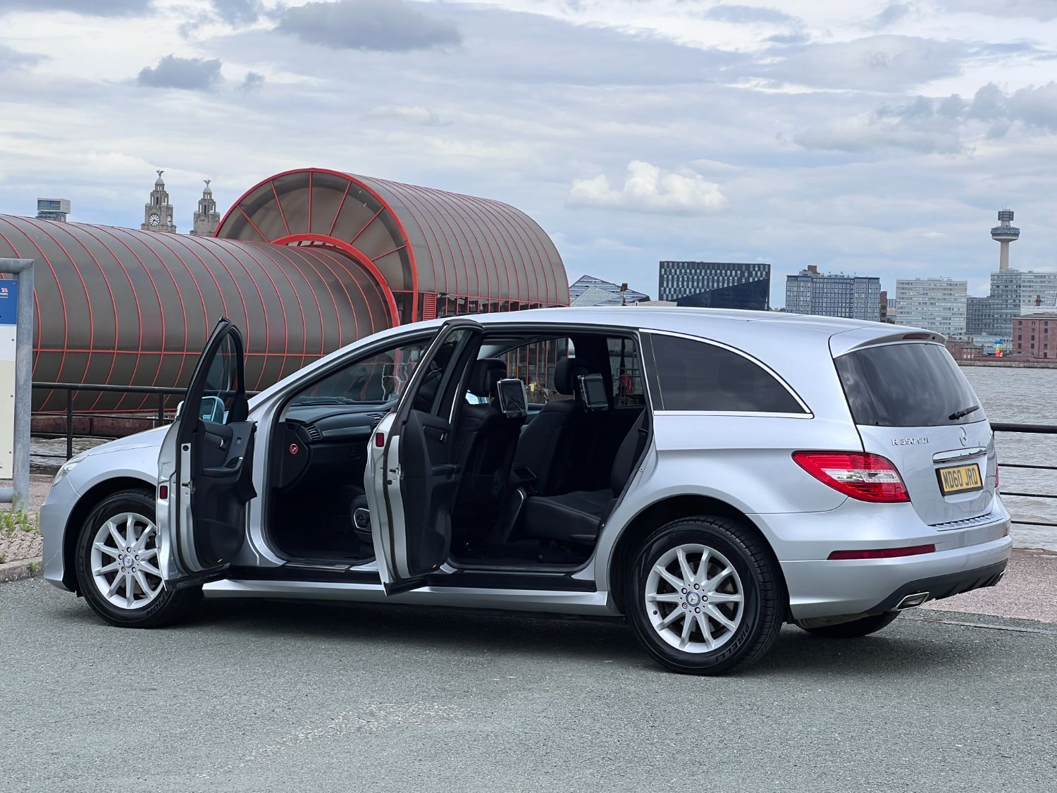 A rare car with incredibly low mileage and fantastic spec! Mercedes-Benz R350L CDI Sports Tourer which is finished in Iridium Silver metallic paintwork with black Nappa leather upholstery that has travelled just 29,730 miles and has had one previous owner from new.