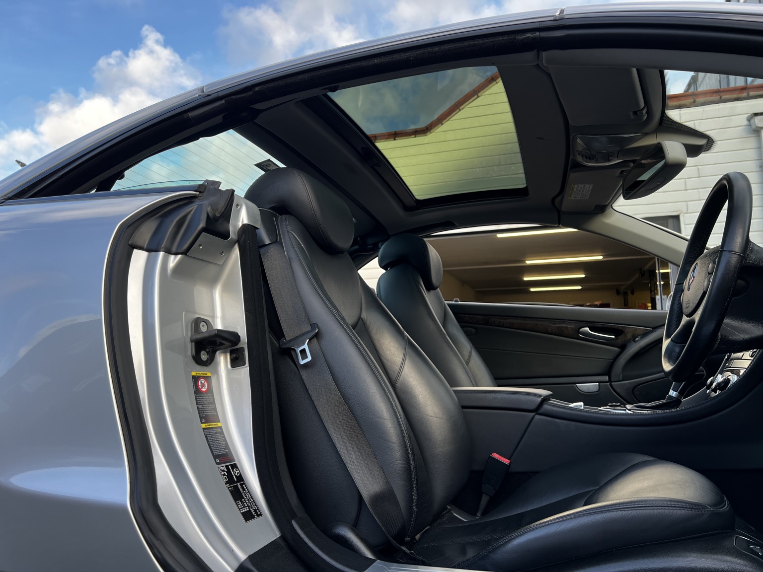 As you would expect with a Mercedes SL there is an excellent specification with panoramic glass roof, electric memory seats, automatic xenon headlights, climate control, heated seats, power steering column, power fold mirrors, satellite navigation, front and rear parking sensors, bluetooth phone prep, CD changer, power folding roof, remote locking (2 keys).