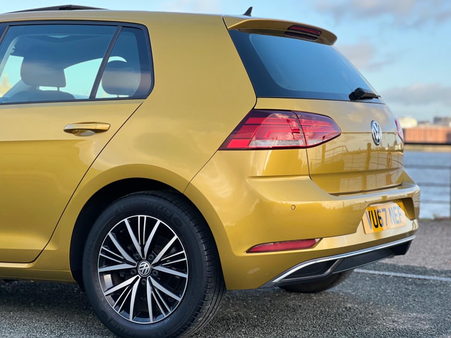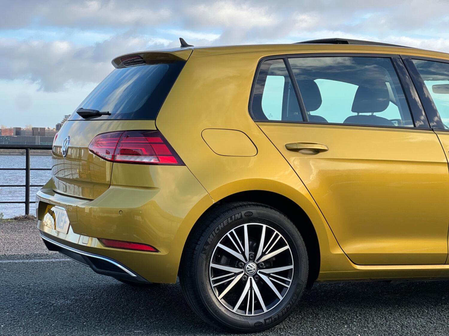 A beautiful one private owner example with a great spec and full service history. Purchased from Listers Volkswagen in Worcester with optional extras including keyless entry, rear view camera, exterior badge deletion, electric sliding panoramic glass sunroof, LED front fog lights with cornering light function and Tumeric metallic paint. This is on top of the standard SE NAV equipment with satellite navigation, air conditioning, automatic lights, adaptive cruise control, power folding door mirrors, multi function steering wheel, bluetooth phone, trip computer, electric windows, reverse parking sensors and alloy wheels.
